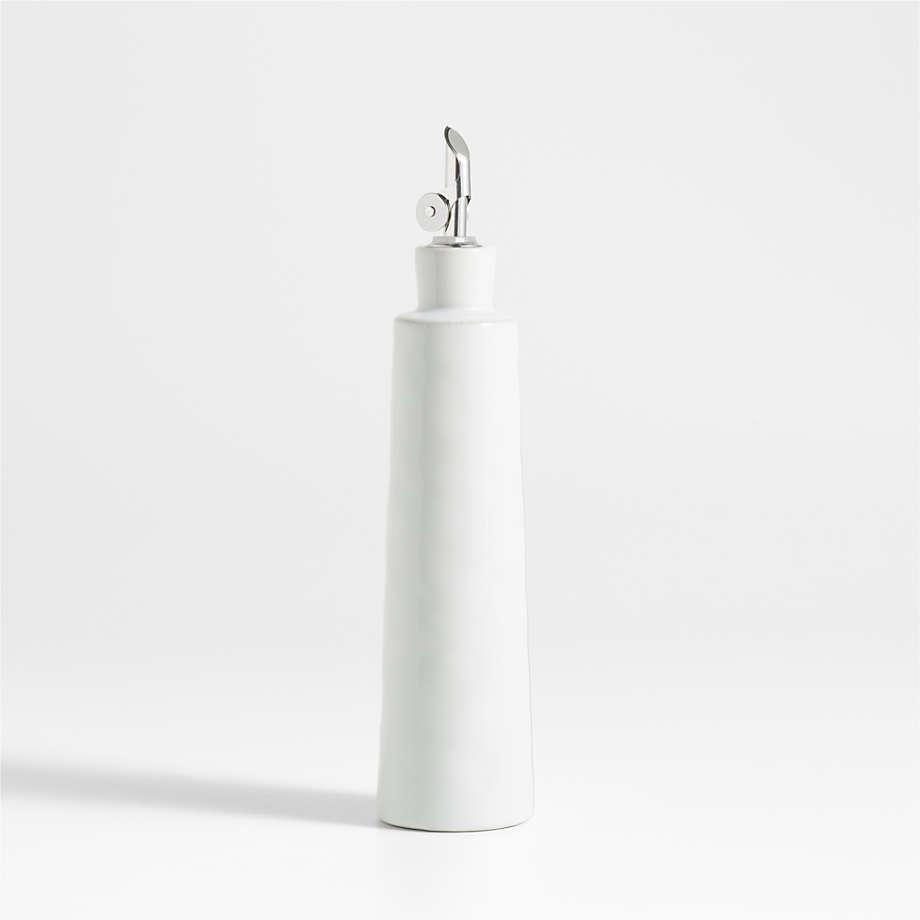 Made to complement our coveted Marin collection, this beautiful oil cruet exhibits the same artisanal, organic lines. The subtly textured stoneware is glazed by hand in glossy white for a display-worthy presentation of your preferred oil or vinegar. The tall, tapered vessel is right at home on countertops, open shelving or kitchen tables.