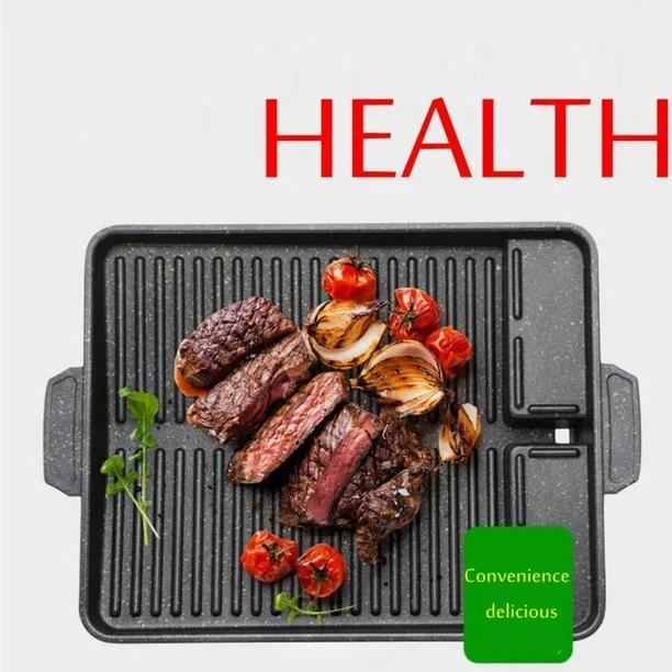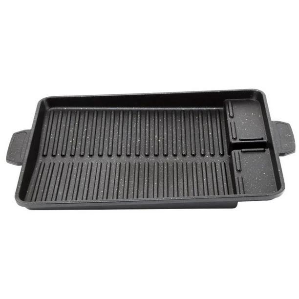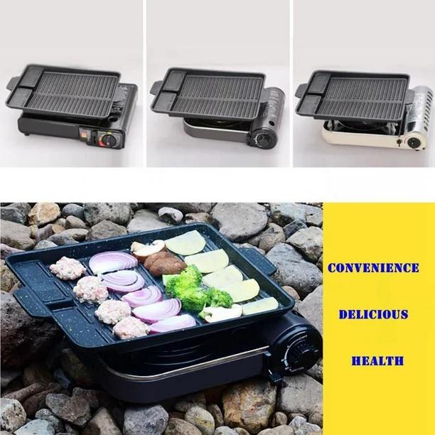 Non-stick coating and the special structure and oil-conducting design at the bottom of the baking tray can timely discharge excess oil stains. Environmentally friendly aluminum die-casting disc body is durable, make your barbecue process more convenient and fun. The universal design of the four-way pot rack feet can be used for standard gas stoves.