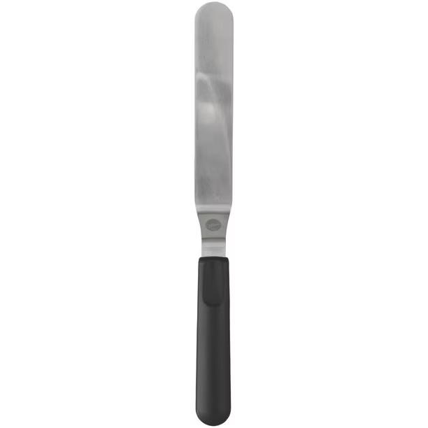 This Wilton icing spatula is great for frosting your cakes. The angled shape makes it easy to keep fingers out of icing as you go, and the stainless steel blade makes smoothing your buttercream a cinch. This 13-inch cake spatula is designed with the decorator in mind. • Angled spatula is great for frosting and smoothing icing on cakes without getting your fingers in the icing.