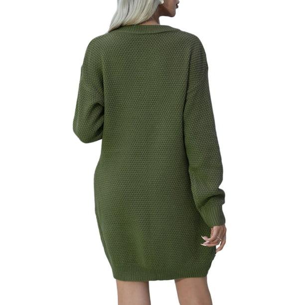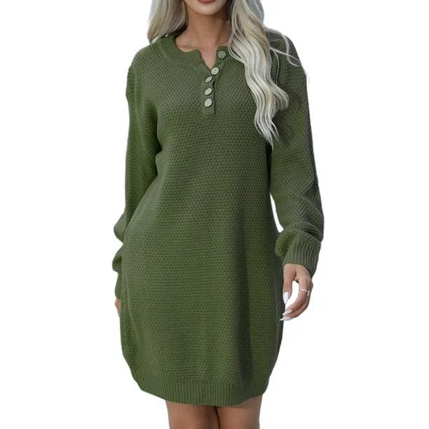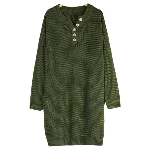 Sexy Dance Women Dresses Button Pullover Jumper Knitted Sweater Dress Casual Mini Long Sleeve Sweaters Green XL
