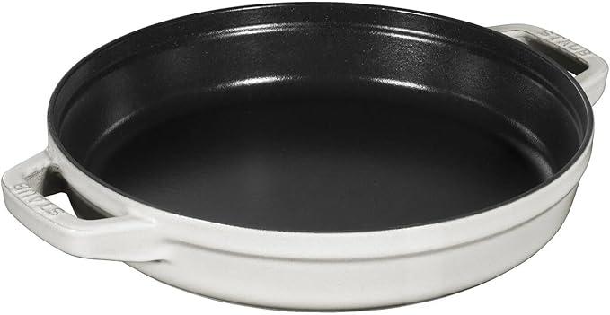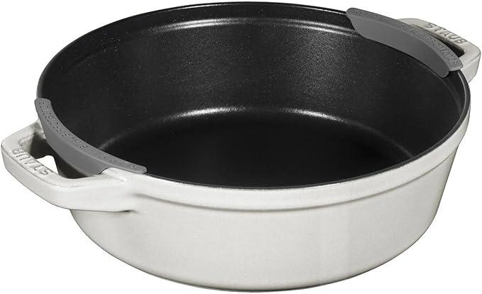 Set includes 4.2QT/4L cocotte, 3QT/2.9L braiser, 9.5”/24cm skillet and a lid that fits each piece of cookware Sloped sides allow for snug nesting for space-saving storage Textured black matte enamel interior requires no seasoning and ensures exceptional browning, and heat retention and distribution. Disclosure: We are a participant in the Amazon Services LLC Associates Program, an affiliate advertising program designed to provide a means for us to earn fees by linking to Amazon.com and Affiliate sites.
