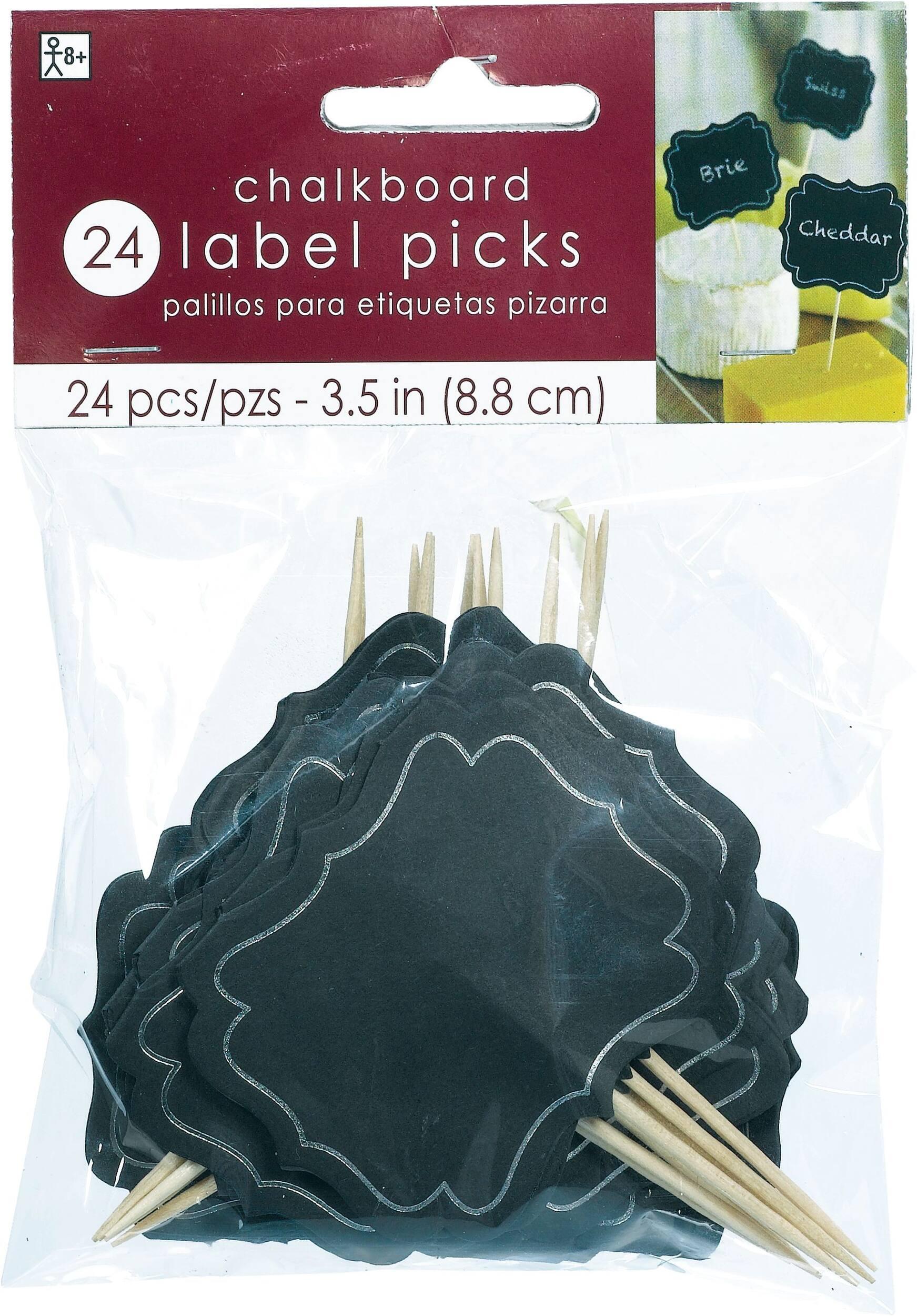 Customizable Chalkboard Label Party Picks, Black, 3.5-in, 24-pk, for Baby Shower/Birthday Party/New Year's Eve