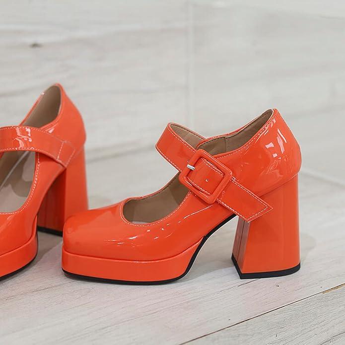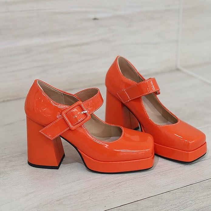 Chunky heel dress shoes for women are about 4inch/10cm heel, 0.8inch/2cm platform. Available in colors of black, orange, red, brown, red. Square toe pumps for women chunky heel with synthetic leather vamp, soft breathable man-made leather lining, and durable slip-resistant rubber sole to ensure steady steps. Disclosure: We are a participant in the Amazon Services LLC Associates Program, an affiliate advertising program designed to provide a means for us to earn fees by linking to Amazon.com and Affiliate sites.