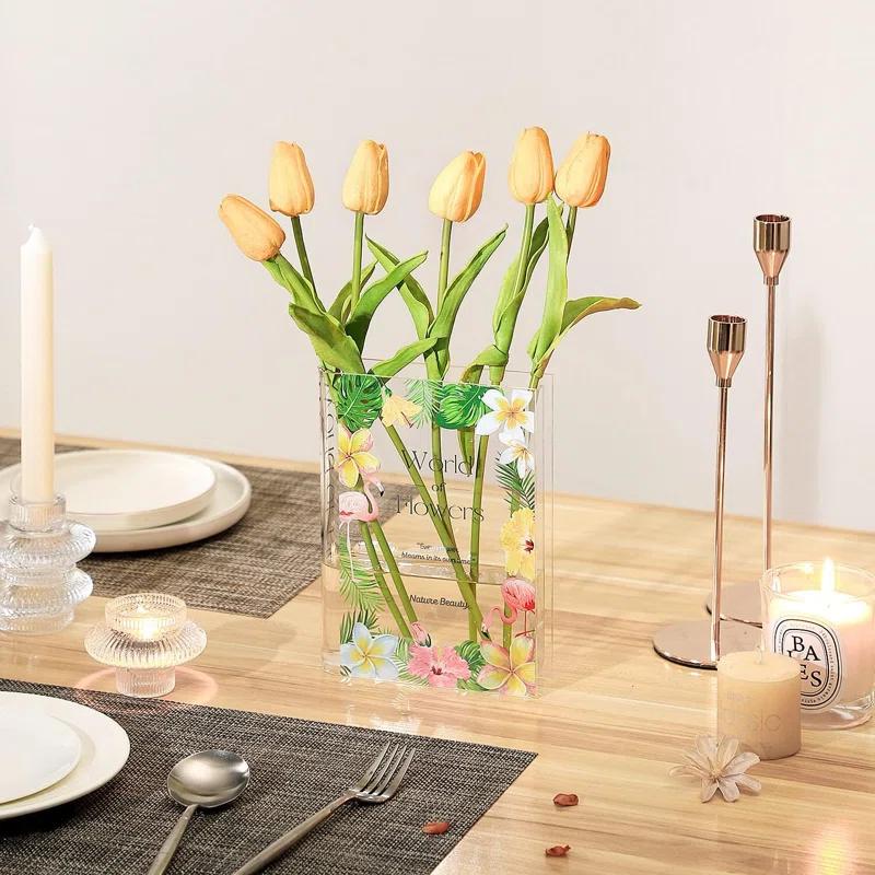Book Vase, Acrylic Book Vase for Flowers, Book Flower Vase Clear, A Book About Flowers Vase, Book Shaped Vase, Modern Decorative Vase for Home, Bedroom, Living Room, Office, Dining Table
