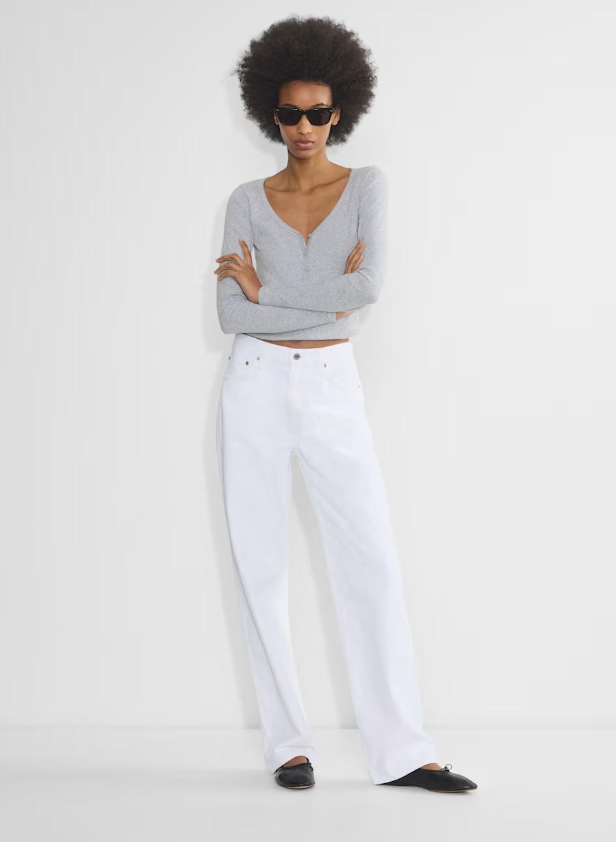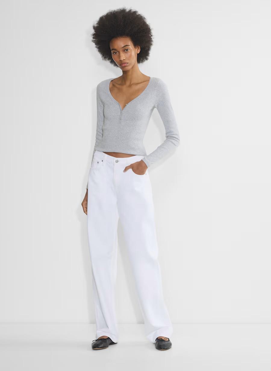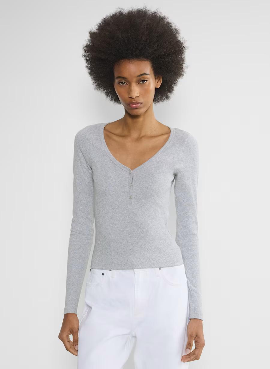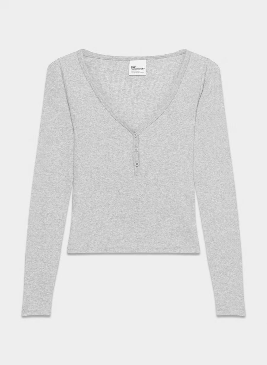 This is a versatile longsleeve henley with a V neckline, button closure and tight fit. It’s made from Aritzia's HomeStretch™ — body-hugging, stretchy ribbed fabric with a cottony soft feel. For your everyday.