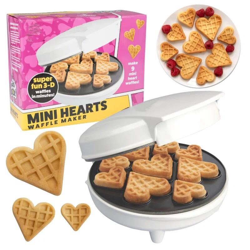 Valentine's Day Mini Hearts Waffle Maker - Bake 9 Heart Shaped Waffles Or Pancakes W Electric Nonstick Iron