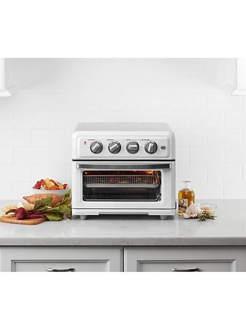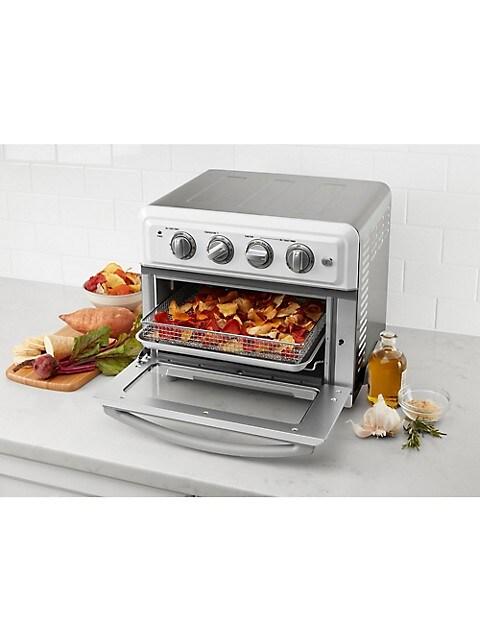 Introducing a healthier way to fry, and so much more! The Cuisinart® airfryer convection & toaster oven is a premium full-size toaster oven with a built-in air fryer. That means it not only bakes, convection broils, and toasts, it also lets you air-fry right inside the oven. Best of all, a large, four-pound chicken requires only about a teaspoon of oil to fry! Air frying, which uses powerful ultra-hot air, is a healthier way to prepare delicious fried favourites, from wings to fritters to fries to shrimp. And since toaster ovens stay on the countertop, this fryer doesn't have to move back and forth from cupboard to counter. Enjoy the crunch without the calories and messy cleanup, with the airfryer convection & toaster oven from Cuisinart! Includes oven rack baking pan, air fryer basket and instruction manual with recipes Sever cooking functions: Air fry, convection bake, convection broil, bake, broil, warm and toast