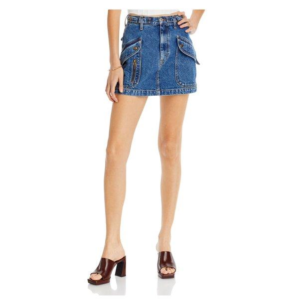 REDONE Womens Blue Zippered Pocketed Snap Tab Waist Mini A-Line Skirt 28 Waist