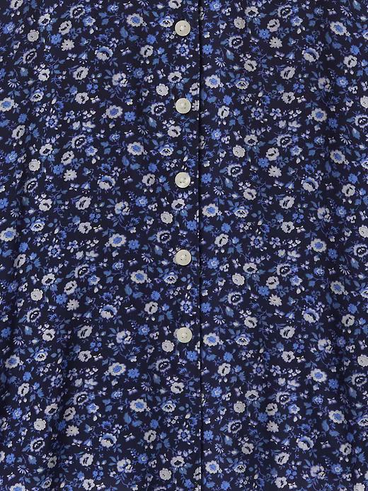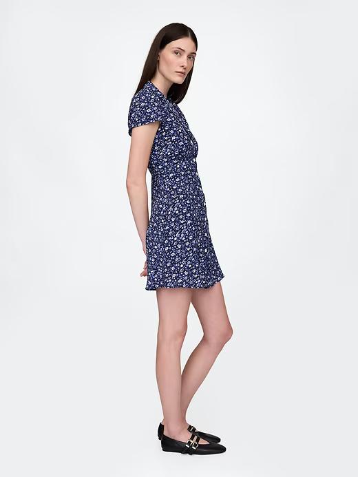 Smooth rayon crepe mini dress. Notch collar. Short cap sleeves. Button front. Allover floral print. This product was made in a factory that invests in gender equality and women’s empowerment. Through RISE (Reimagining Industry to Support Equality) and Gap Inc.’s program P.A.C.E. (Personal Advancement & Career Enhancement), we support people who make our clothes to build the skills, knowledge, confidence, and resilience needed to advance in work and life. Learn more here. #717165