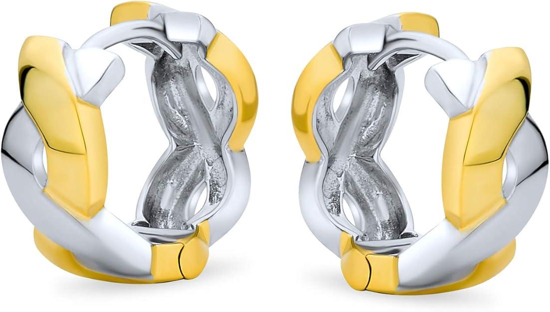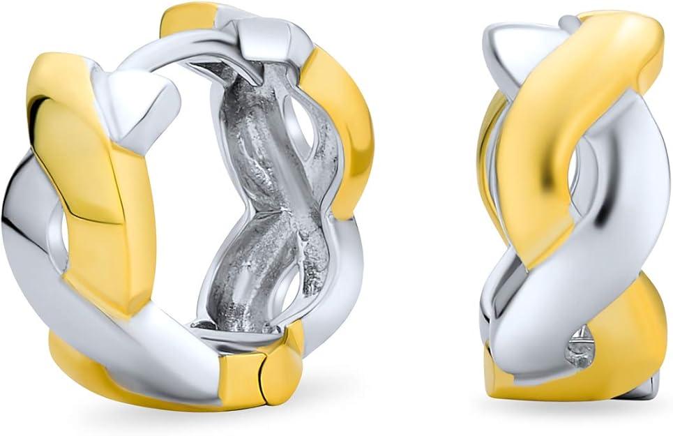European Greek Key Design Two Tone Twist Braid Wide Huggie Hoop Earrings