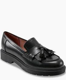 Level up your work wardrobe with these women’s Johnie silver loafers from Marc Fisher. These slip-ons feature PU upper, almond moc toe and a kiltie tassel, a fringe accent, and a cutaway lip for a classic look. The synthetic lining and padded footbed provide enhanced cushioning and lasting comfort while the durable synthetic outsole with tread pattern offers a reliable grip.