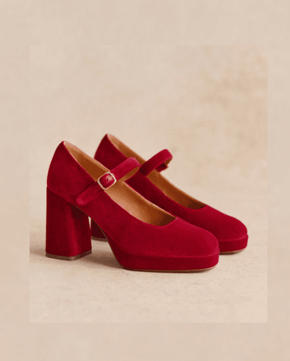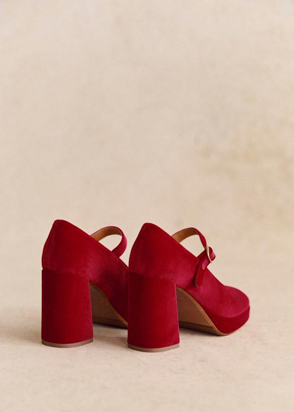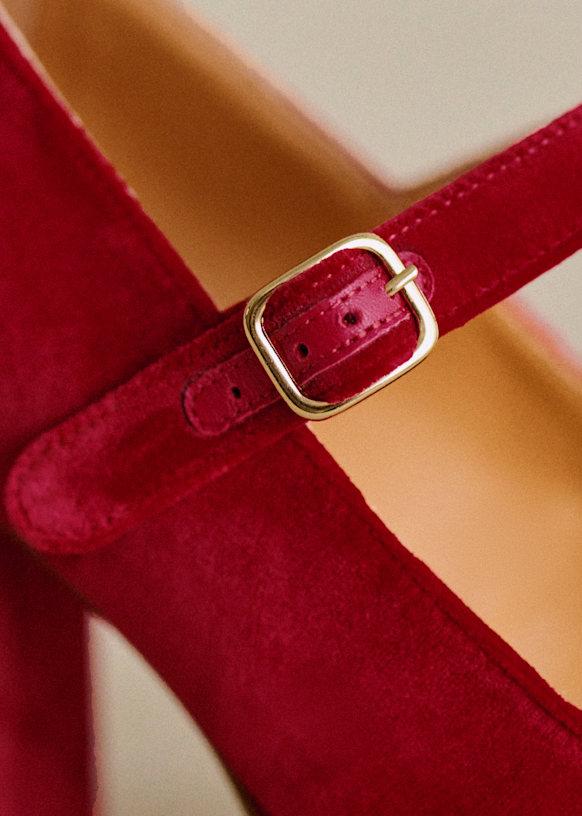 Baby Janes with high heels Item made in our Portuguese workshop Secured by an instep strap with pin buckle Velvet textile exterior Leather lining and insole Rubber outsole Wrapped heel in velvet textile Heel height: 9 cm / 3.5 in