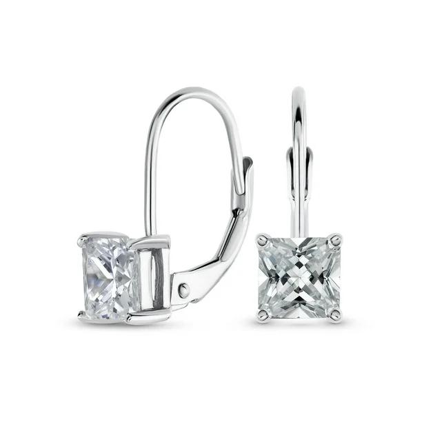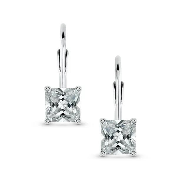 Classic Bridal Princess Cut Cubic Zirconia Solitaire Square AAA CZ Leverback Earrings