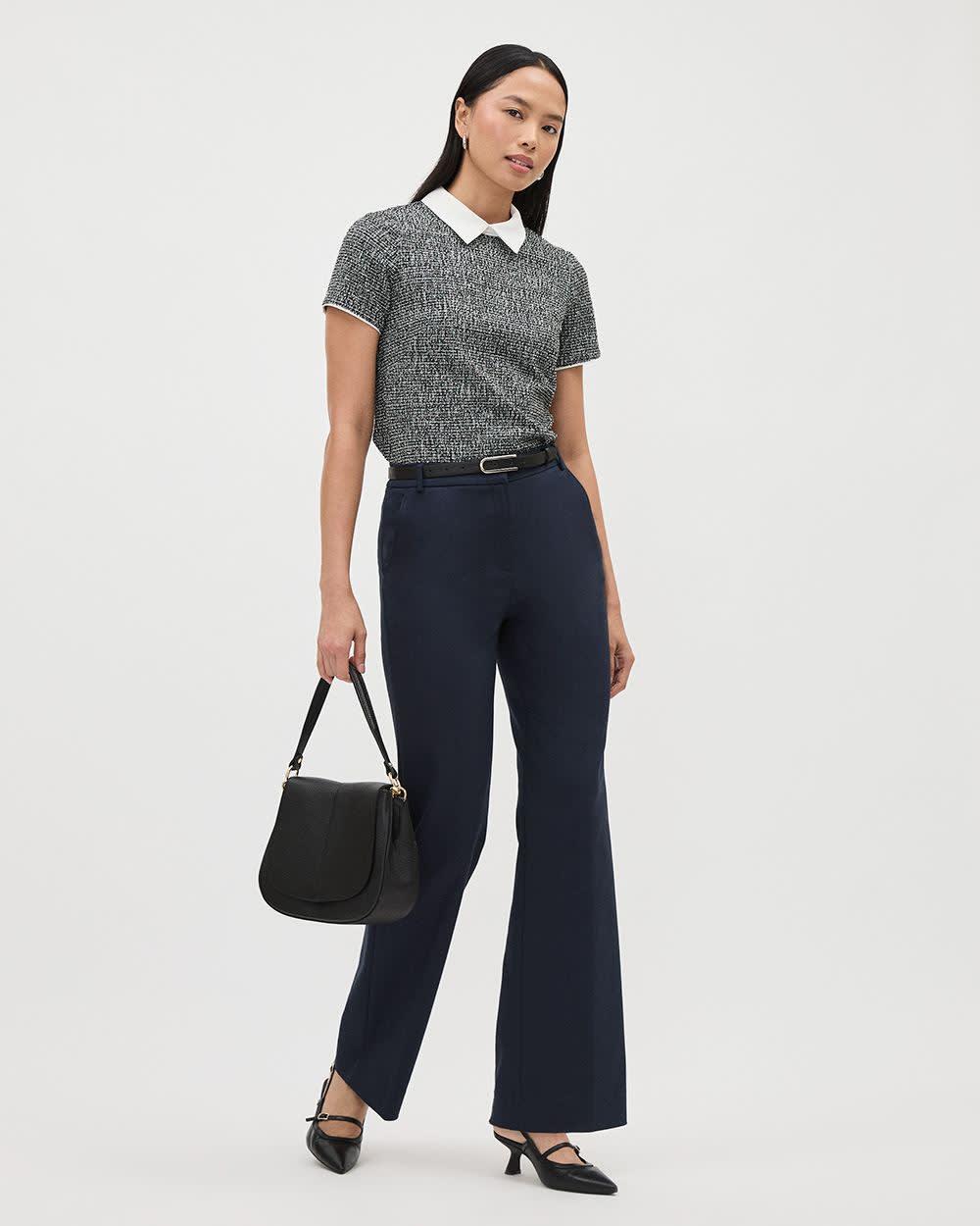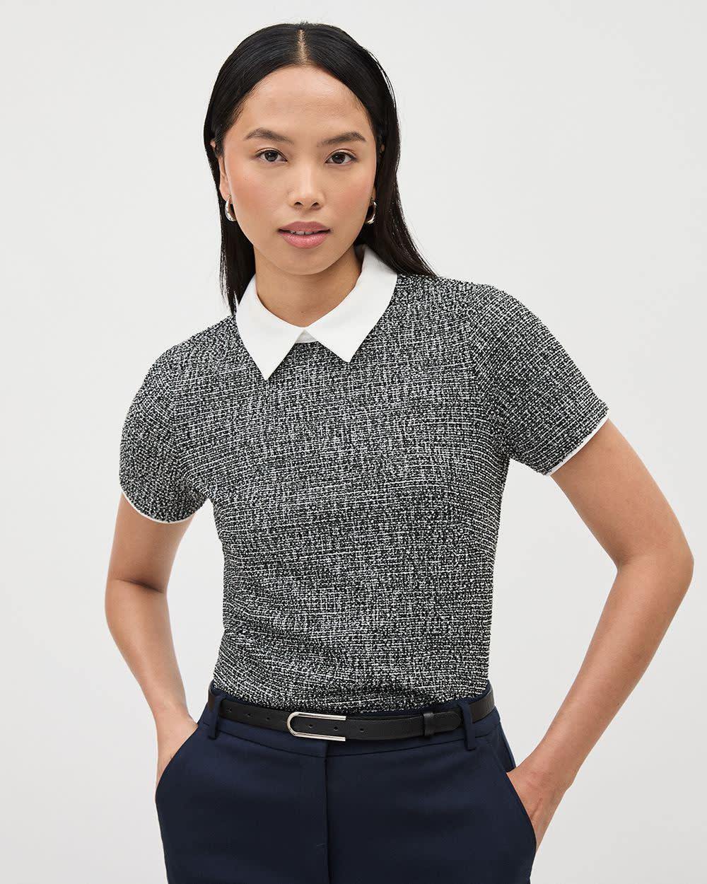 Short-Sleeve Top with Shirt Collar