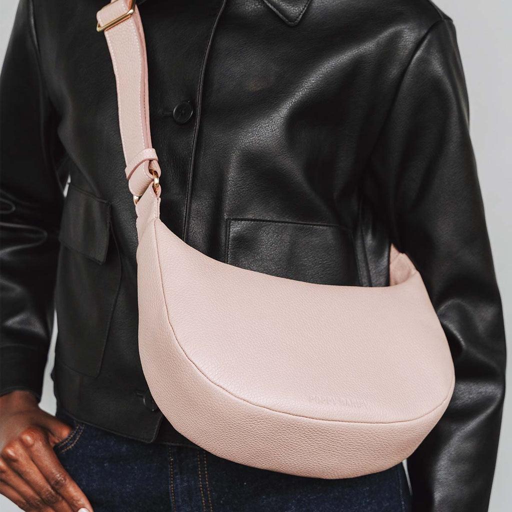 A sleek leather crossbody designed to elevate your day-to-day looks with its distinctive arced silhouette. Perfectly sized for your essentials, with an adjustable strap for a custom fit, you’ll wear this timeless companion endlessly.