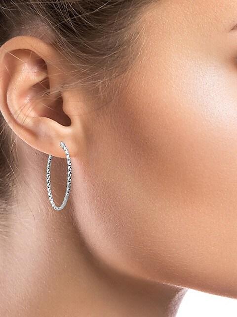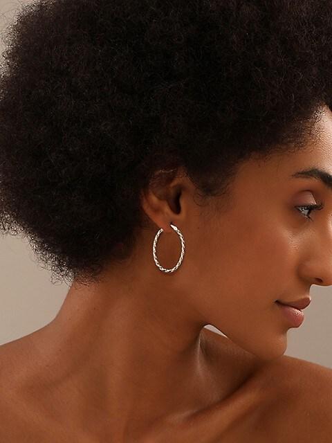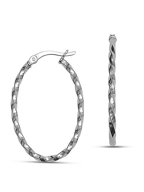 Elevate any style with these large oval rope hoops. Made of sterling silver and treated with an anti-tarnish finish. Sterling silver Anti-tarnish finish Hinged click-back closure Imported
