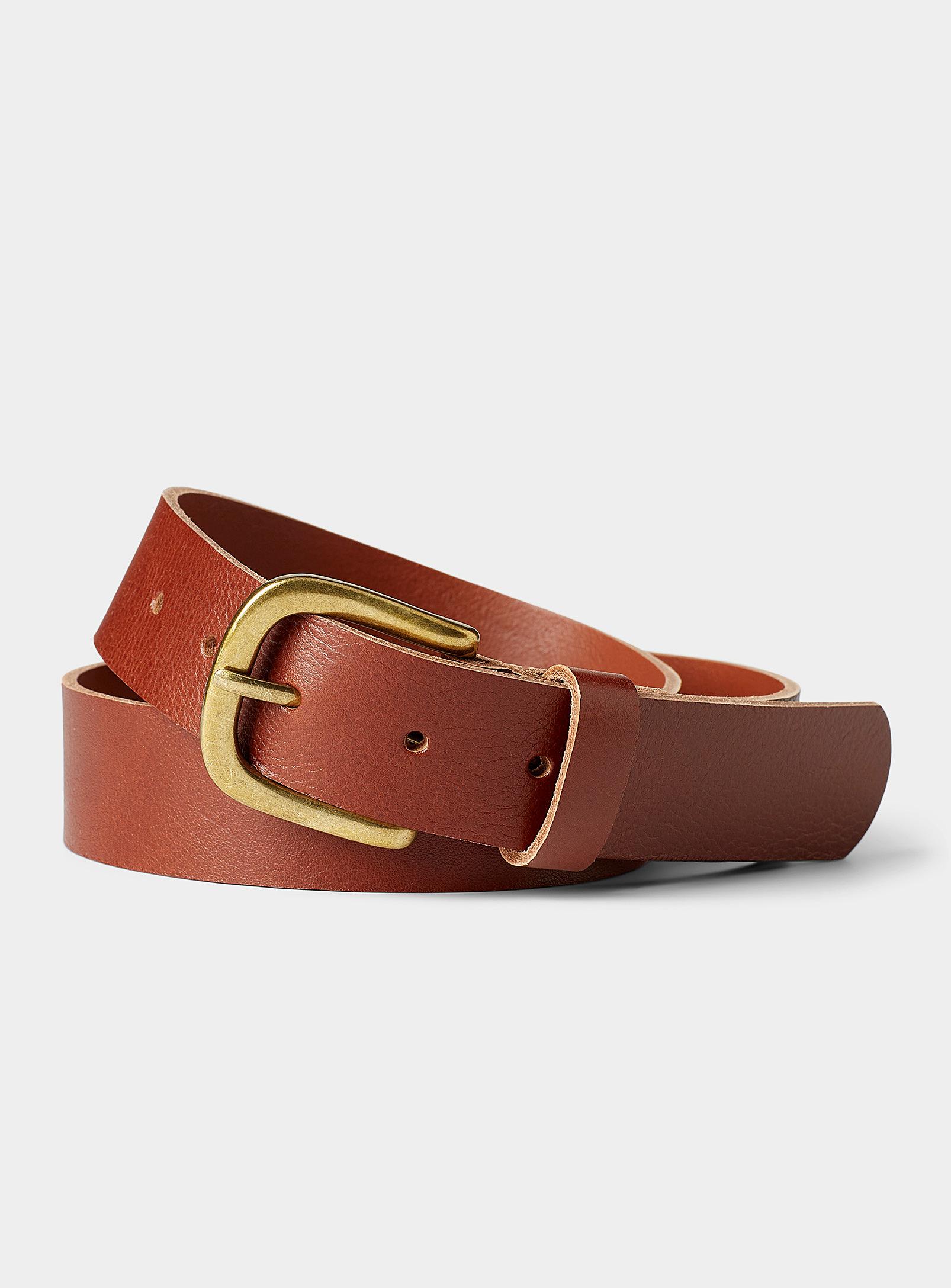 Accessories > Women > Beltsbr>Simons - Square-buckle wide leather belt Simonsbr>ul>li>A classic-looking, wide belt made of pebbled Italian leather with an accent rounded square buckle/li>li>Genuine grained leather/li>li>Metallic buckle/li>li>Made in Canada/li>li>Width: 35 mm/li>/ul>