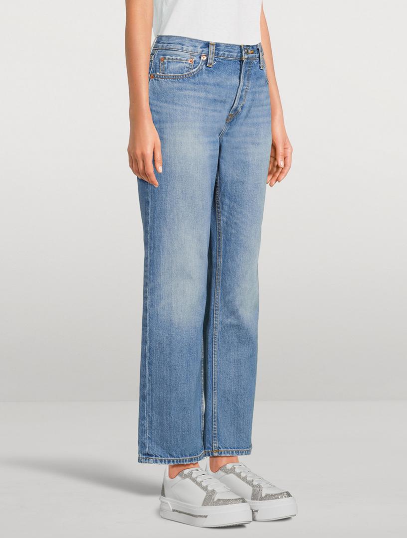 The Standard is a take on the iconic men’s 501 Levi’s. This 100% cotton pair features a distressed wash, a higher mid-rise easy top block, an eased built-in through the straight leg, full-length inseam, classic button fly, and a finished hem.