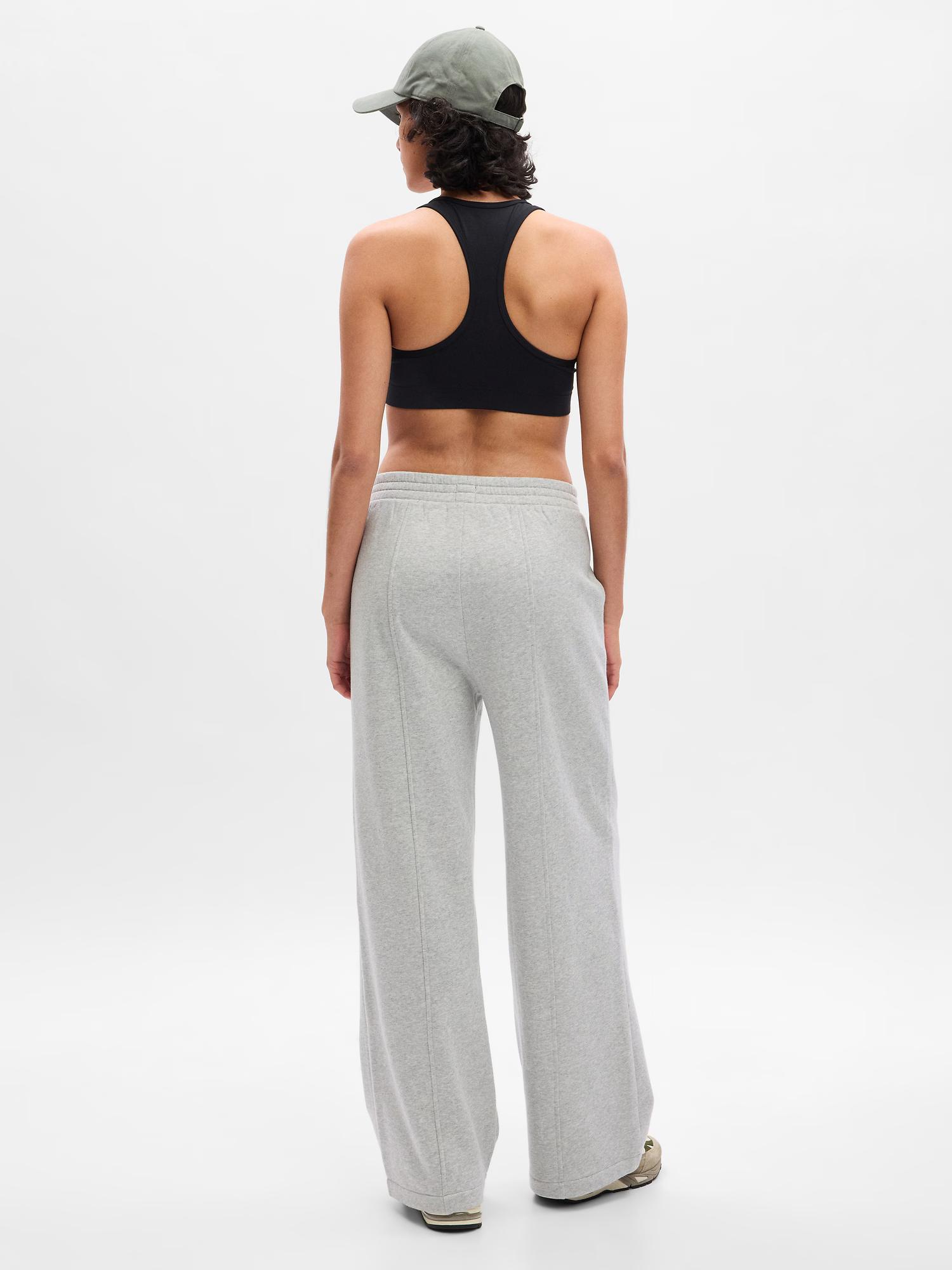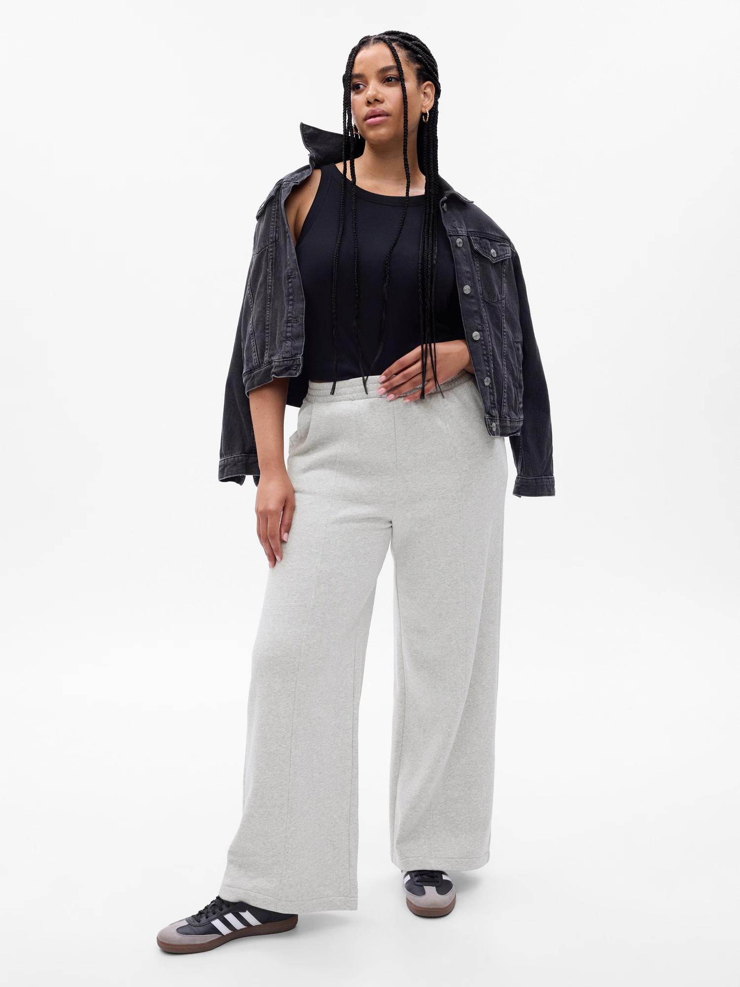 Our softer than soft sweats. Brushed on the inside. Smooth on the outside. Made so that no two are alike. Soft fleece knit wide-leg sweatpants. Elasticized waist. Front slant pockets. Seam at front. #729444