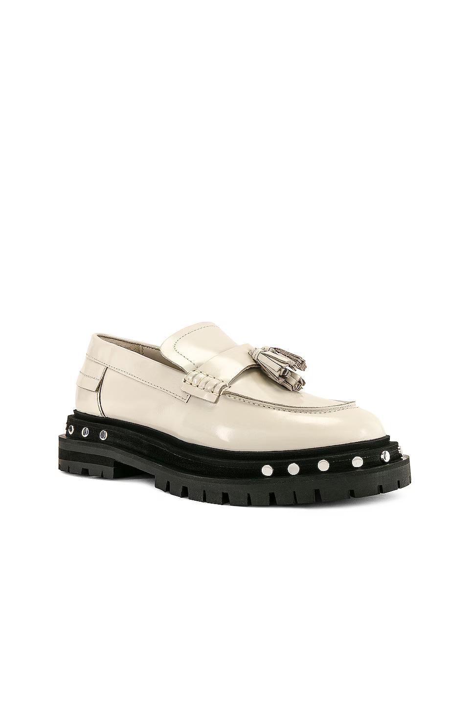 Leather upper with rubber sole Made in India Slip-on styling Leather footbed Silver-tone studded accents Tassel detail at vamp Almond toe Approx 25mm/ 1 inch heel Approx 13mm/ 0.75 inch platform Revolve Style No. FREE-WZ392 Manufacturer Style No. OB1688955