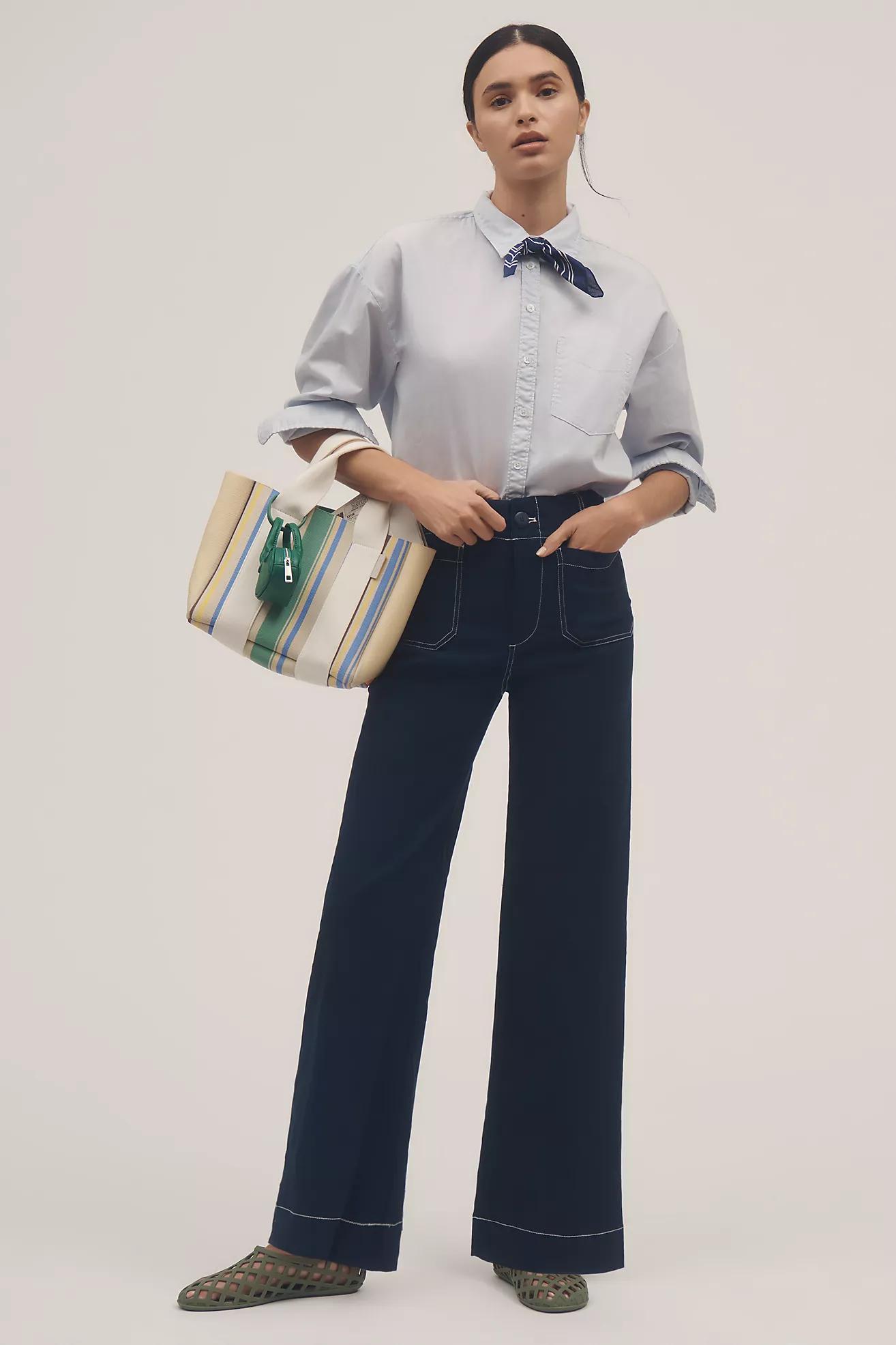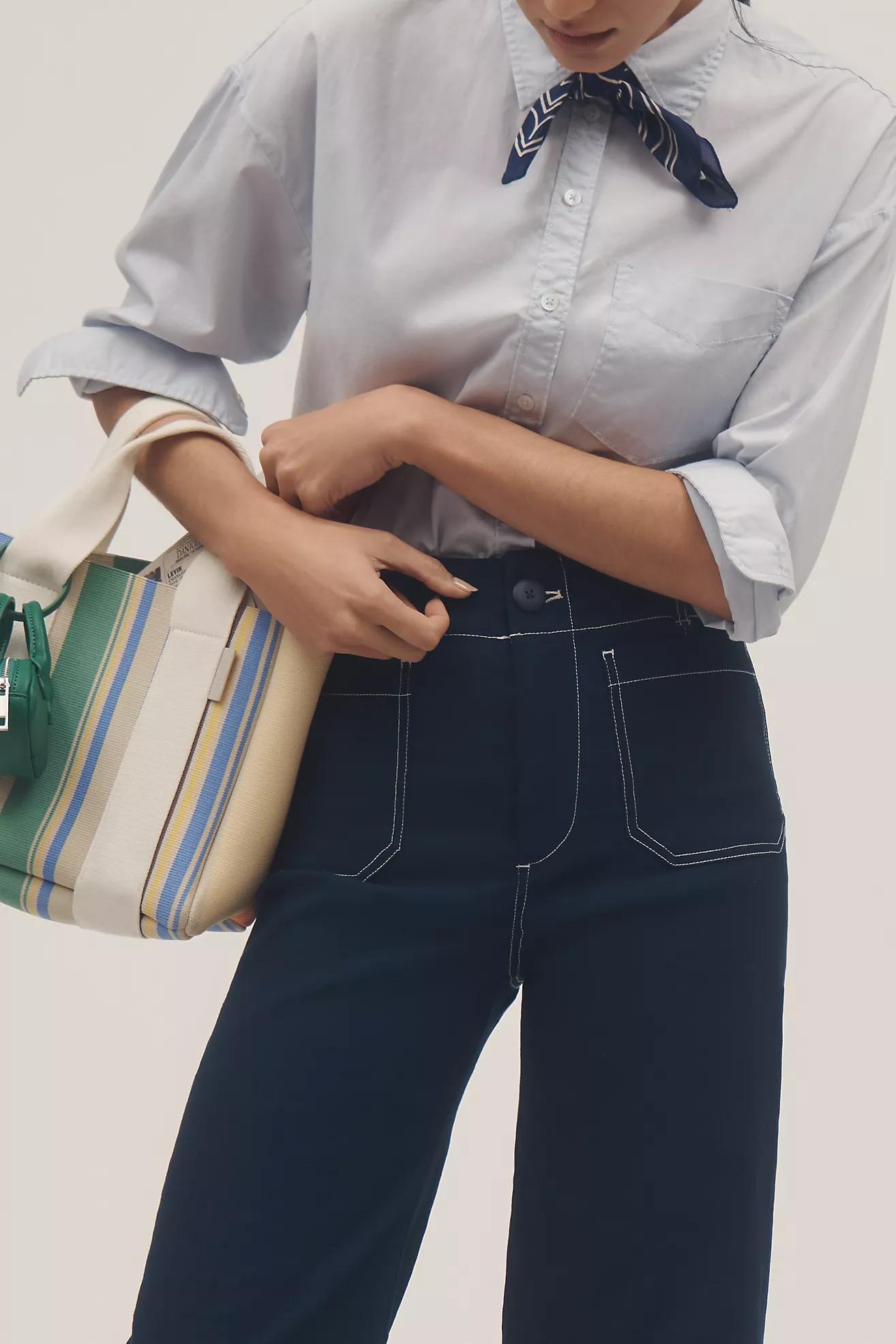 The Colette Contrast-Stitch Cropped Wide-Leg Pants by Maeve: Magic Fabric Edition