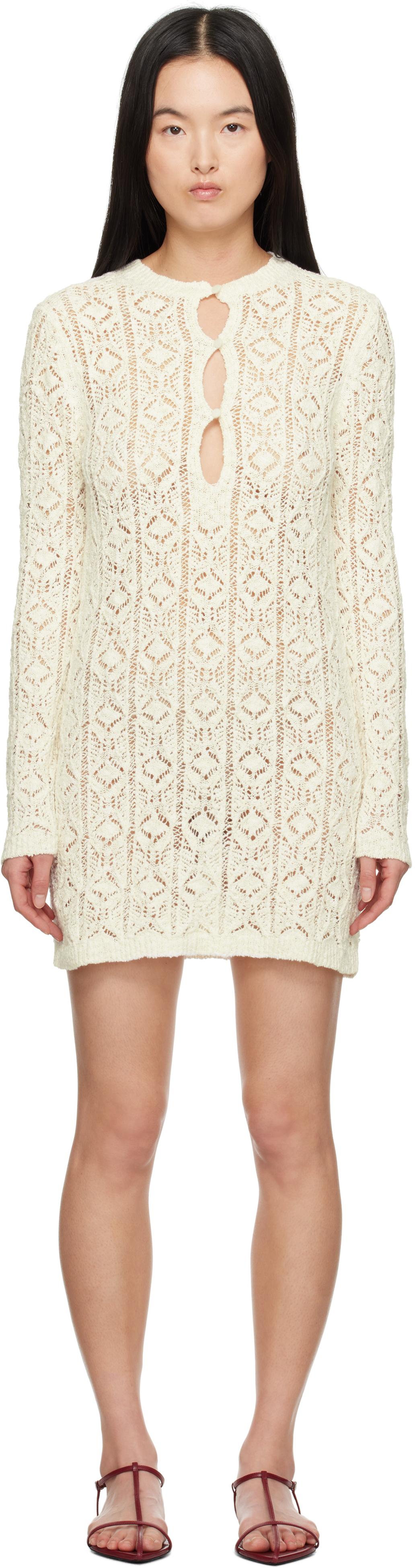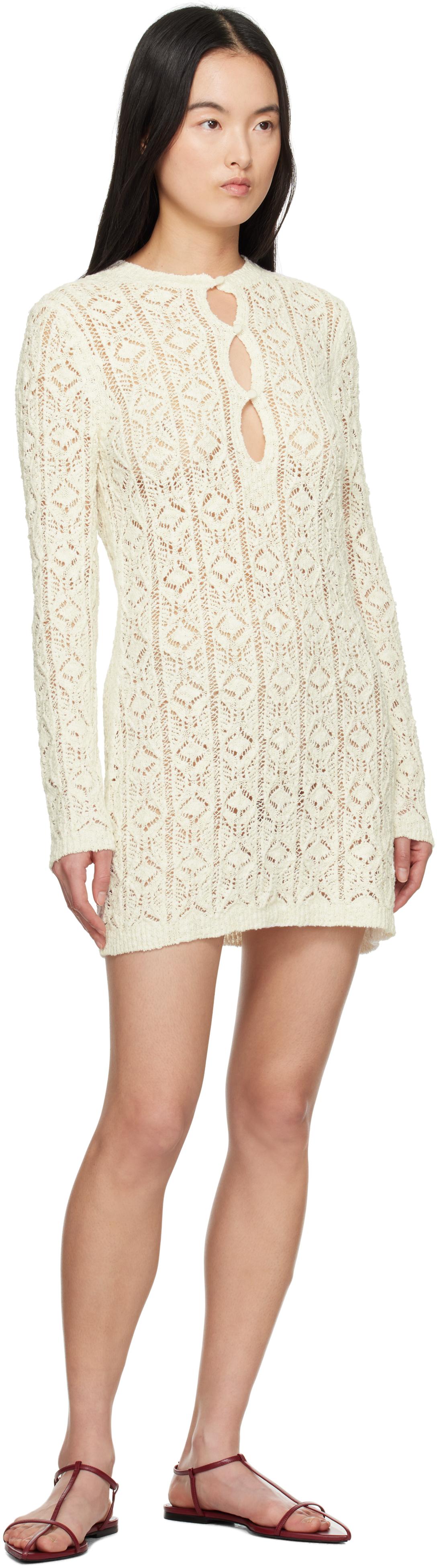 OEKO-TEX®-certified semi-sheer open knit stretch cotton- and silk-blend bouclé minidress. · Round neck · Keyhole cutouts at chest · Rib-knit hem and cuffs · Unlined Supplier color: Ivory