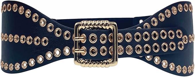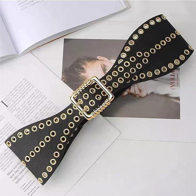 CWCYYDSYY Women's Studded Vintage Wide Waistband Cinch Belts Rivet Elastic Fashion Leather Stretchy for Dresses