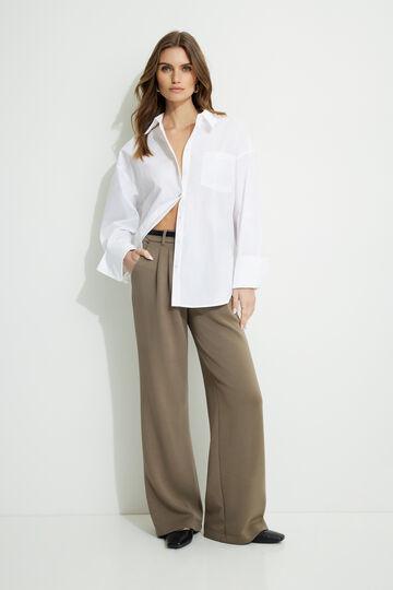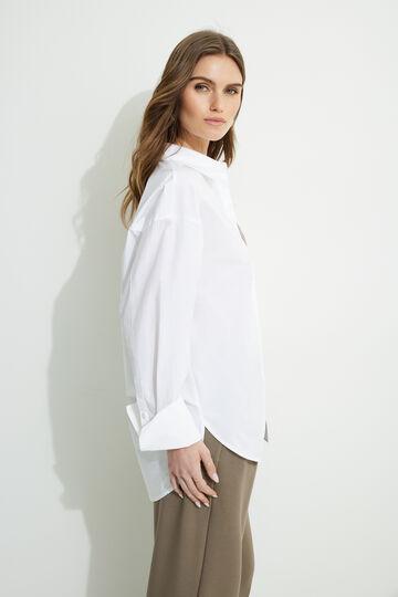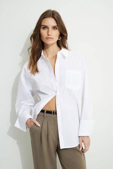 This poplin shirt is designed to have an oversized fit. Style it with jeans for an everyday look. Features Spread collar Concealed button closure Patch pocket Droptail hem Buttoned cuffs Box pleat at back yoke