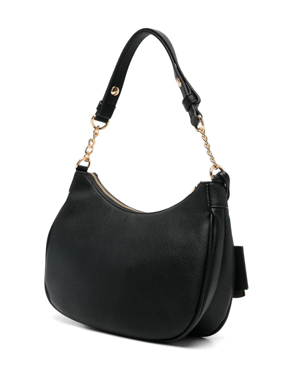 Love Moschino logo-lettering shoulder bag Highlights black faux leather pebbled texture logo lettering to the front top zip fastening faux-leather and chain-link shoulder strap logo charm detail main compartment full lining internal zip-fastening pocket internal slip pocket internal logo plaque This piece comes complete with a protective dust bag.