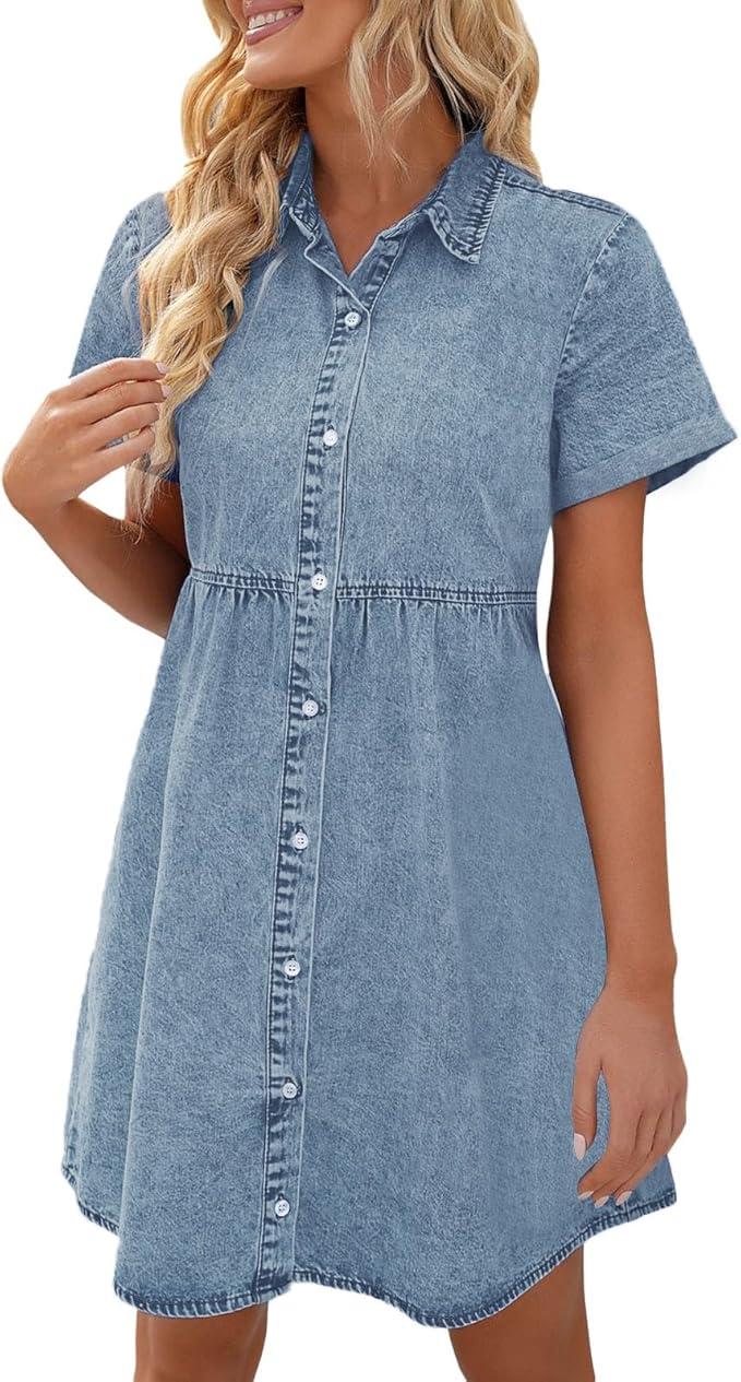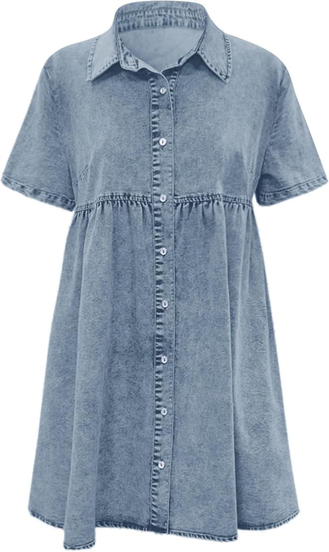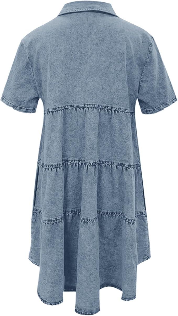 Women's Short Sleeve Button Down Flowy Tiered Denim Dress Dresses for Casual