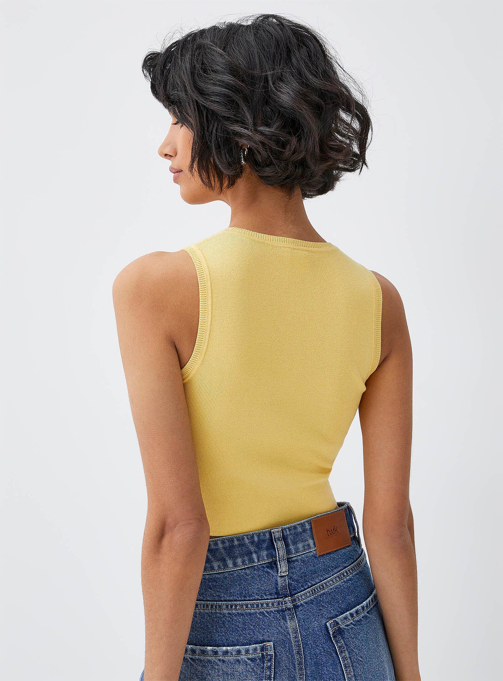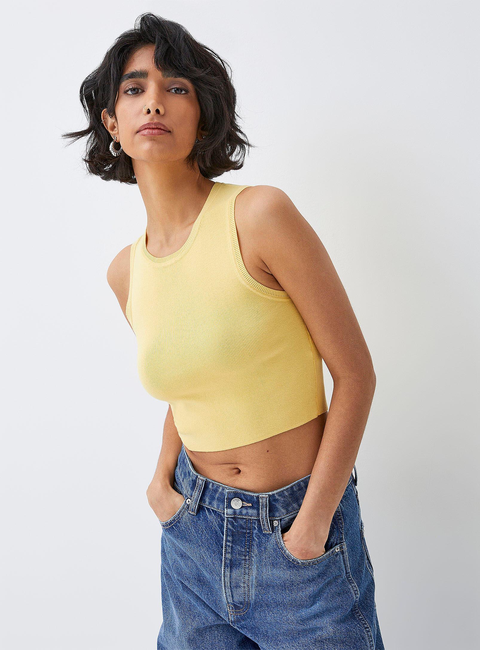Twik - Fine-knit cropped cami (Women, Yellow, X-SMALL)