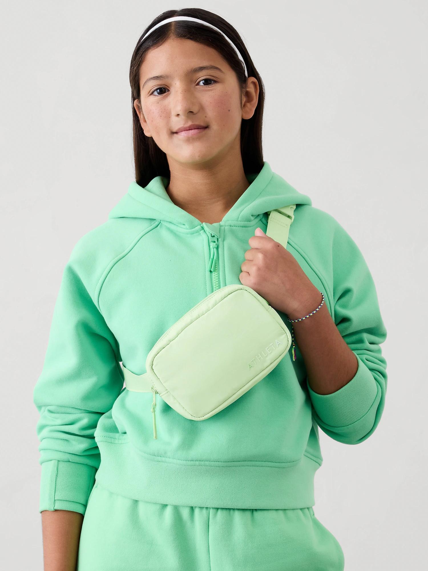 FOR: School, practice, and play FEEL: Recycled polyester fabrication is sleek with a soft hand-feel FAVE: Internal Pocket to stash essentials Adjustable strap for personalized fit D-Ring loop securely holds your keys.