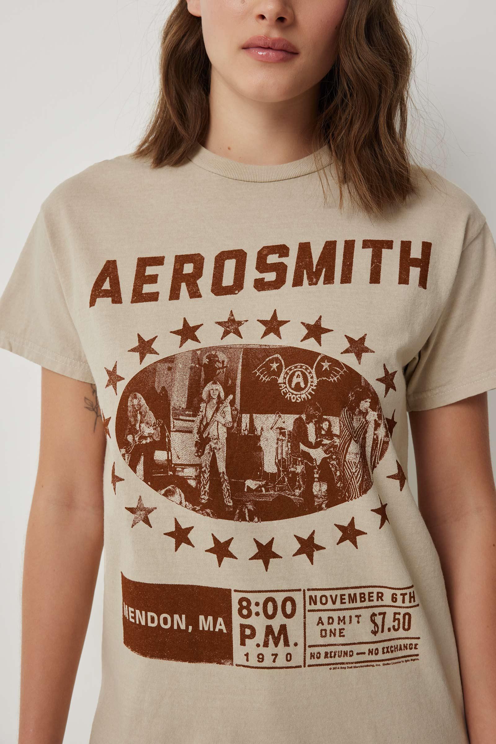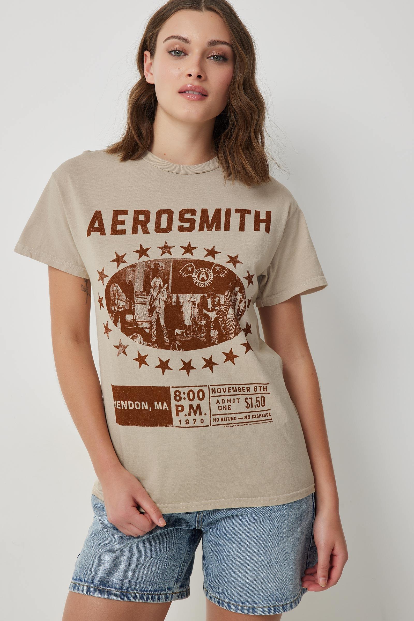 Ardene Aerosmith T-Shirt in Beige | Size Small | 100% Cotton