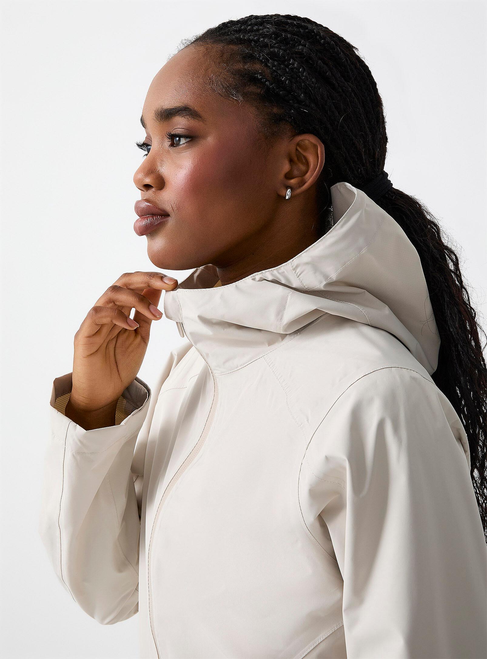 Women > Coatsbr>I.FIV5 - Hooded waterproof and breathable shell jacket I.FIV5br>b>i.FiV5 by Simons: an exclusive designed in Canada/b>br>ul>li>Stay comfortably protected, despite the changing weather, in our exclusive shell with multiple practical qualities/li>li>Waterproof, breathable membrane/li>li>Adjustable drawstring hood/li>li>WaterTight zip closure to protect you from the weather/li>li>Zipped hand pockets, zipped chest pocket/li>li>Adjustable toggle hem/li>/ul>br>br>The size of the item pictured is small