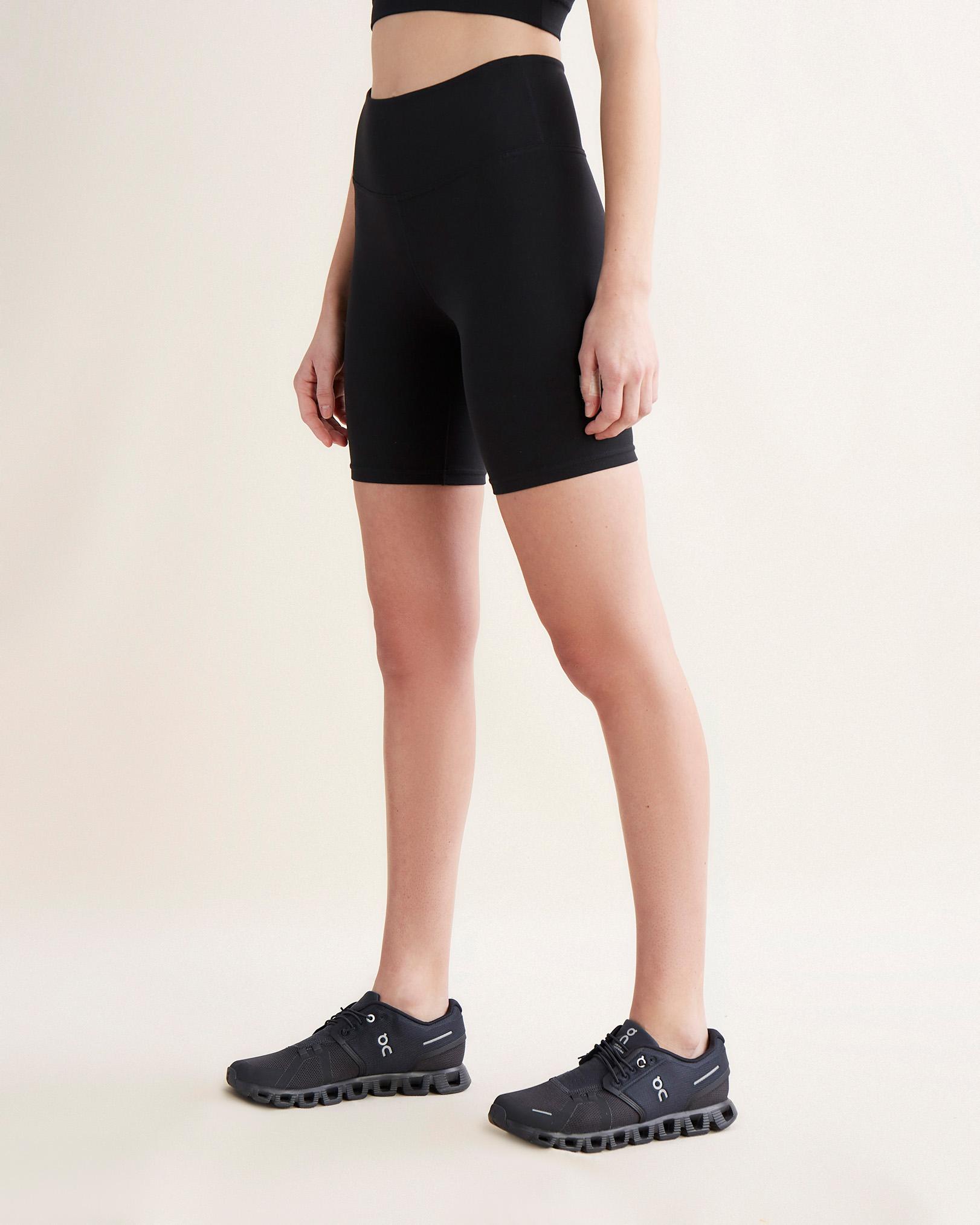 Your favourite Restore Bike Short in a 7 inseam. We took our best-selling legging made from our buttery-soft interlock fabric and turned it into comfortable short that moves with you. Touch of stretch for flexibility High waisted Minimal seams Moisture-wicking ABOUT 81% nylon, 19% spandex SIZE & FIT Model is wearing: size small Model Measurements: Height: 5'9 ; bust: 34B"; waist: 25 ; hips: 35 Inseams: XXS-L: 7 , XL-5X: 7 1/4 LOOK AFTER ME Reverse garment before washing Machine wash cold, gentle cycle with like colours No fabric softeners of any kind No bleach Hang to dry Do not press or iron Do not dry clean Do not iron decoration Roots Restore Bike Short 7 Inch in Black