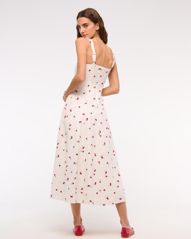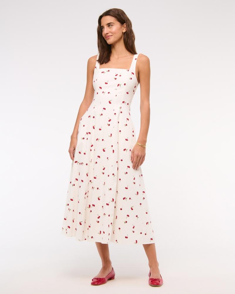 Flattering midi dress in our stretch-enhanced cotton-blend fabric, featuring a slim-fitting bodice, square neckline, adjustable straps, center-back hidden zipper and a flirty skirt. Imported.