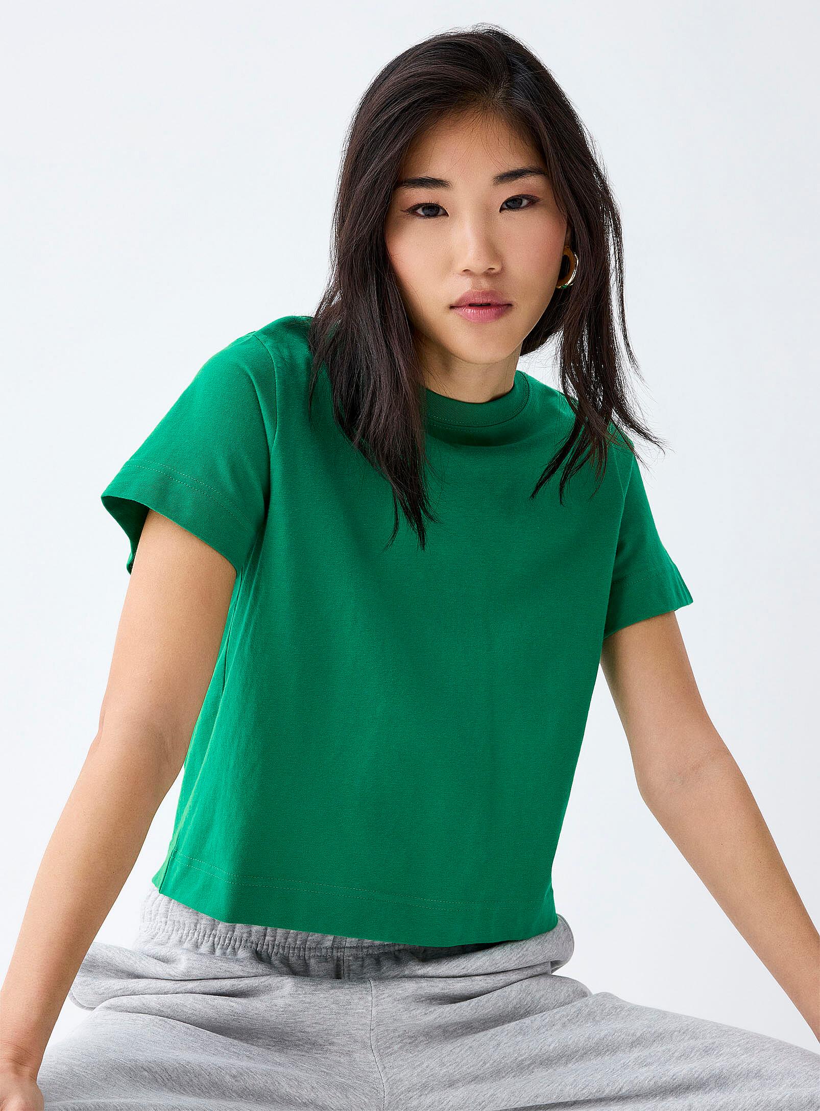 Women > T-Shirts > Croppedbr>Twik - Boxy-fit T-shirt Twikbr>b>Twik by Simons: an exclusive designed in Canada/b>br>ul>li>Soft 100% organic cotton jersey/li>li>Cropped boxy fit/li>/ul>br>br>The size of the item pictured is small