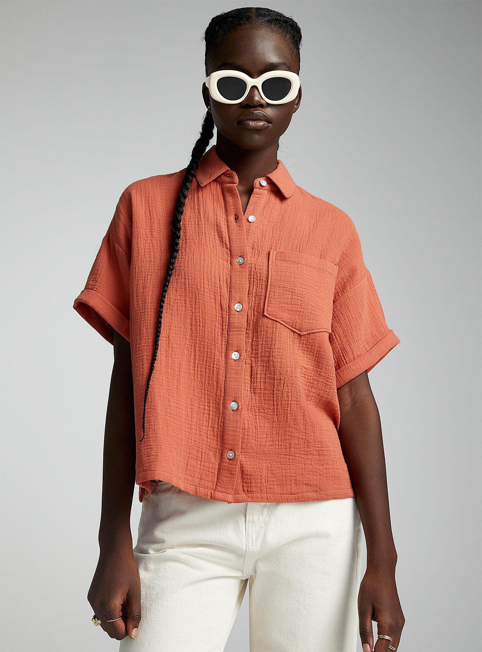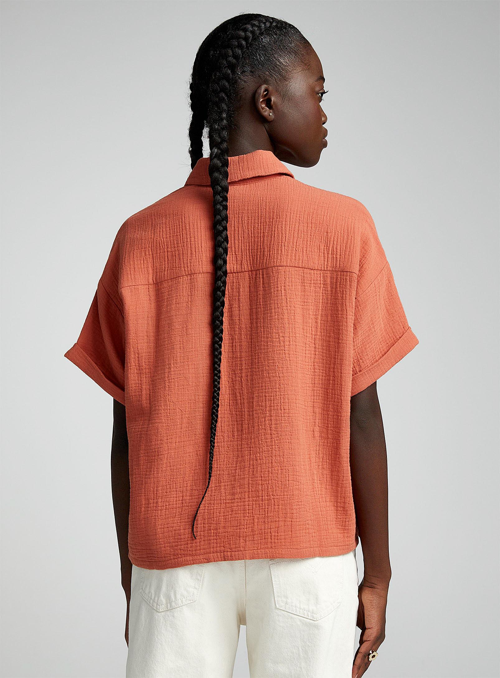 Twik - Pocket gauze shirt Twik Twik exclusive Patch pocket on the chest Iridescent buttons Organic cotton gauze Short sleeves with sewn cuffs Straight, loose fit The size of the item pictured is small