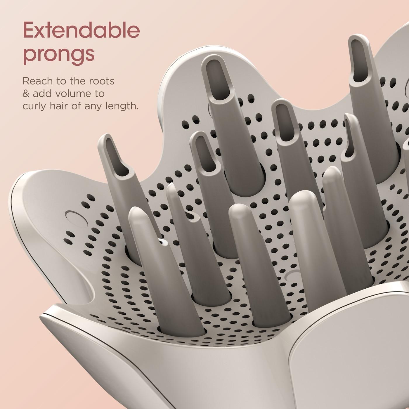 A diffuser that attaches to the Shark Flex Style & trade; blow dryer for fast, even drying from root to tip with no heat damage. Hair Texture: Wavy, Curly, and Coily Hair Type: Fine, Medium, and Thick Hair Concerns:- Curl-Enhancing- Frizz- Volumizing Key Benefits: - Fast, even drying from root to tip- Extendable prongs for all hair lengths- Defines natural curls What Else You Need to Know: This diffuser is compatible only with Shark Flex Style & trade;. To enable curl-perfection, this diffuser features retractable and extendable prongs. Retract prongs for shorter, finer hair and less heat on the scalp. Extend prongs for longer, thicker hair and for reaching and lifting