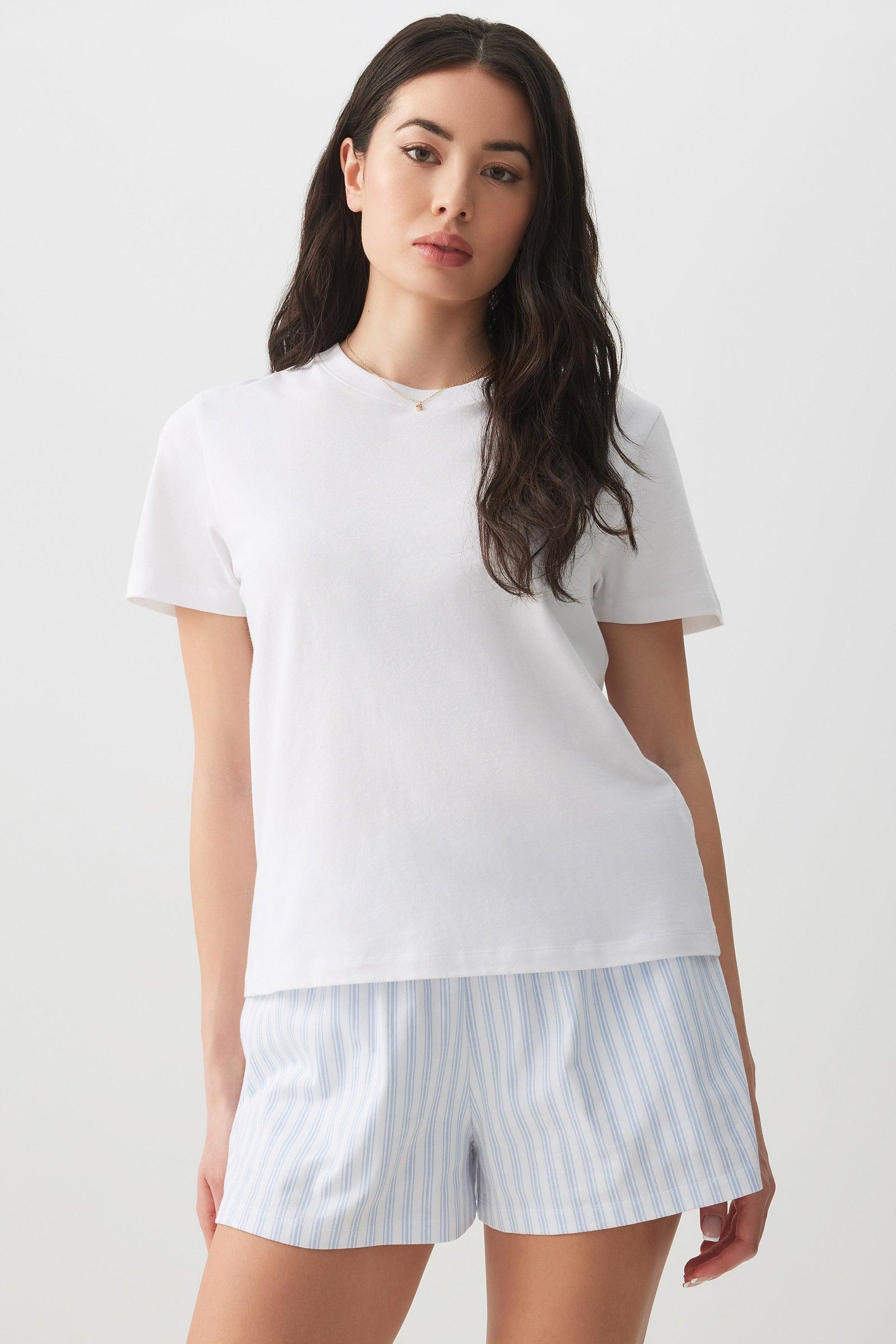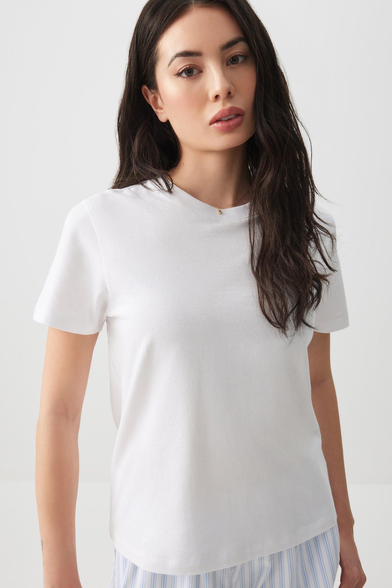 Exclusive piece from our Basic collection. Eco-conscious t-shirt in organic cotton jersey. Crew neck Short sleeves Relaxed fit 95% organic cotton, 5% elastane Model is wearing size SOrganic cotton comes from non-GMO plants, and is grown without the use of synthetic agricultural chemicals (like fertilizers & pesticides). | Ardene Basic Organic Cotton Relaxed T-Shirt in White | Size Medium | Cotton/Elastane | Eco-Conscious