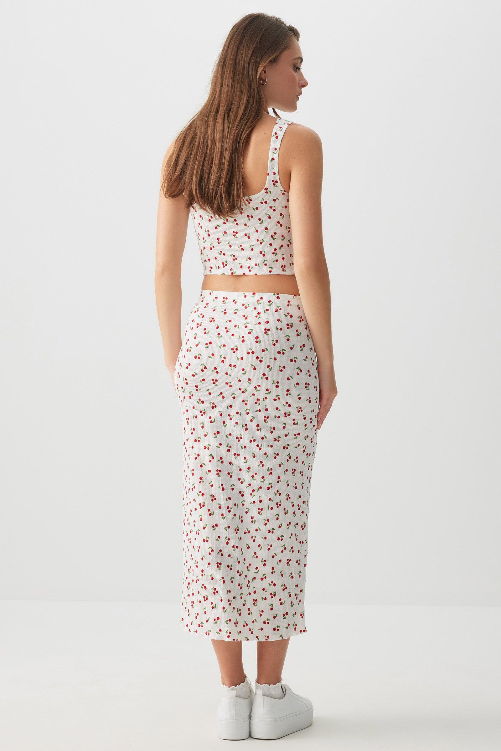 Long bodycon skirt in ribbed knit. Elastic waist Lettuce hem 97% polyester, 3% spandex Model is wearing size SMatching top: 5A-AP32862-04 | Ardene Lettuce Hem Rib Maxi Skirt in White | Size XL | Polyester/Spandex
