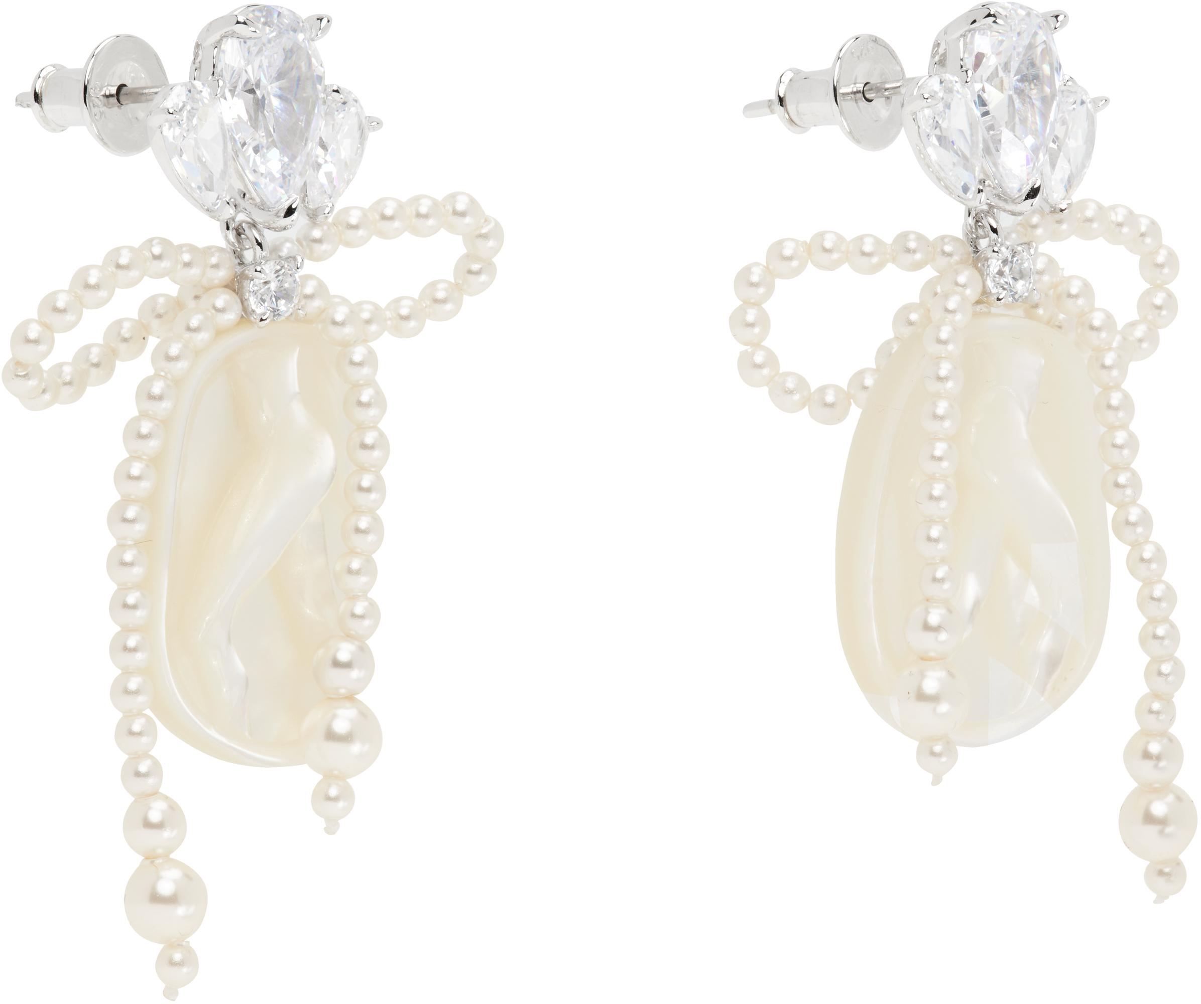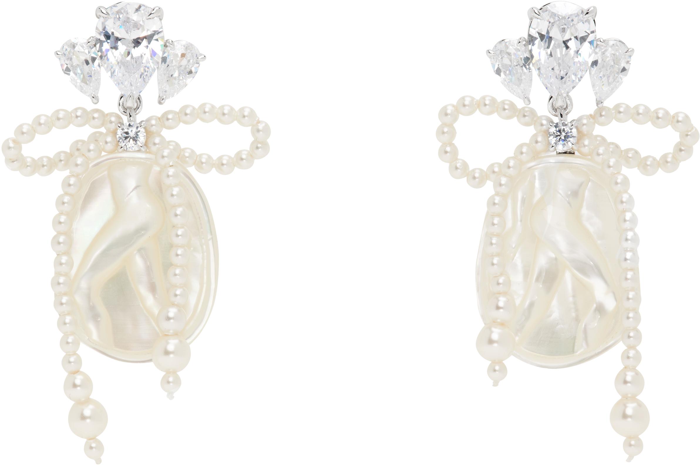 SHUSHU/TONG White & Silver YVMIN Edition Pearl Bow Shell Earrings