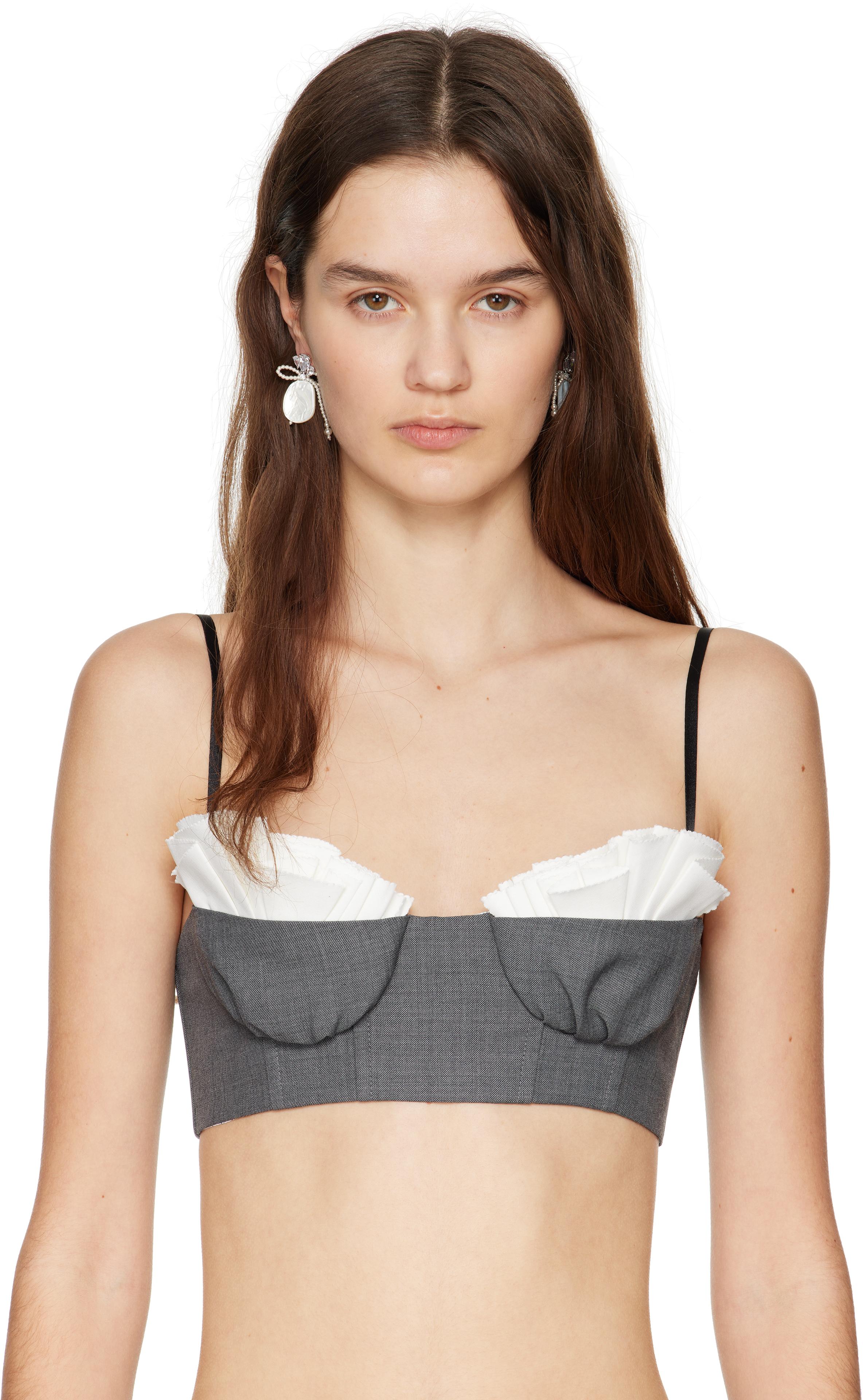 Pair of drop earrings in sterling silver. · Prong-set cubic zirconia stones at face · Beaded pearl bow accent at drop · Embossed graphic charm · Post-stud fastening · H1.75 x W1 Part of the Shushu/Tong x YVMIN collaboration. Supplier color: White