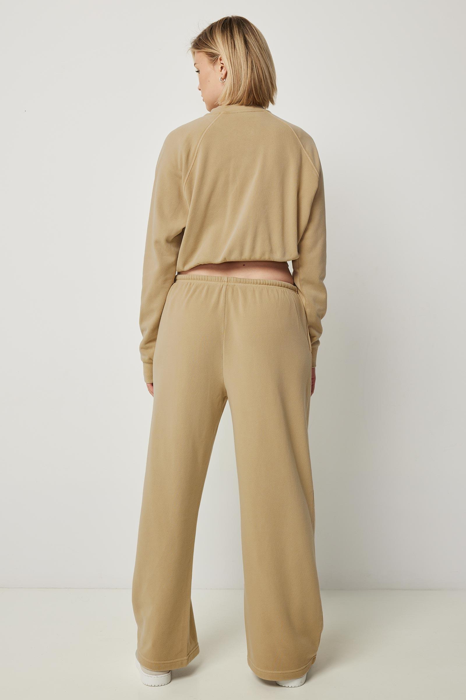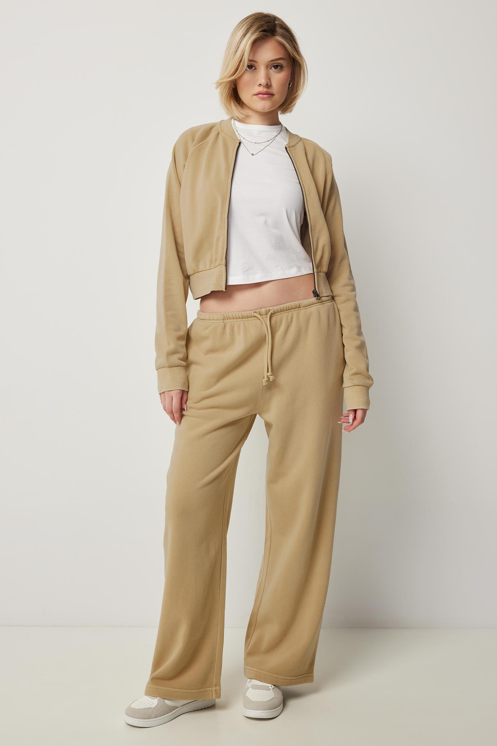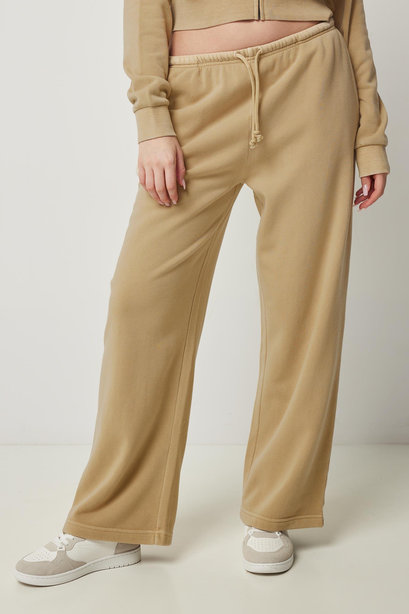 Ardene Wide Leg Sweatpant in Beige | Size Large | Polyester/Cotton | Fleece-Lined