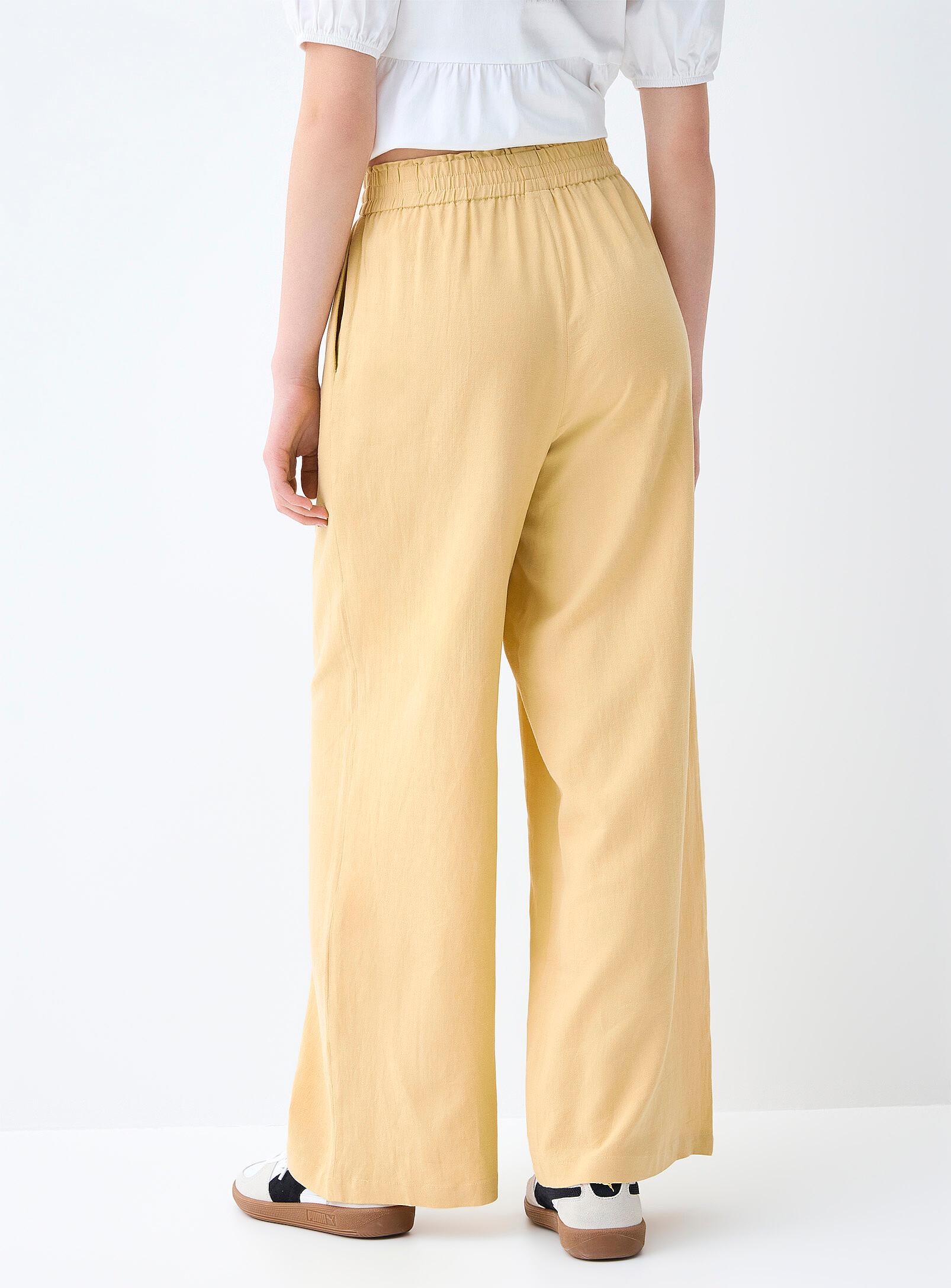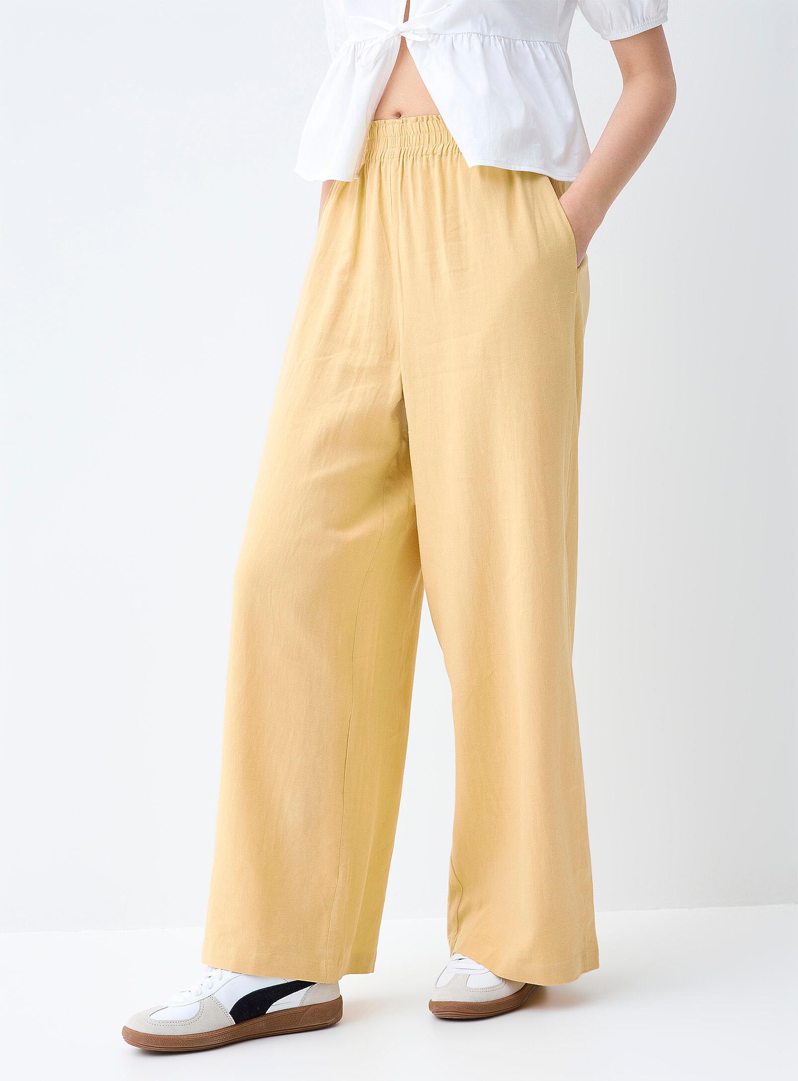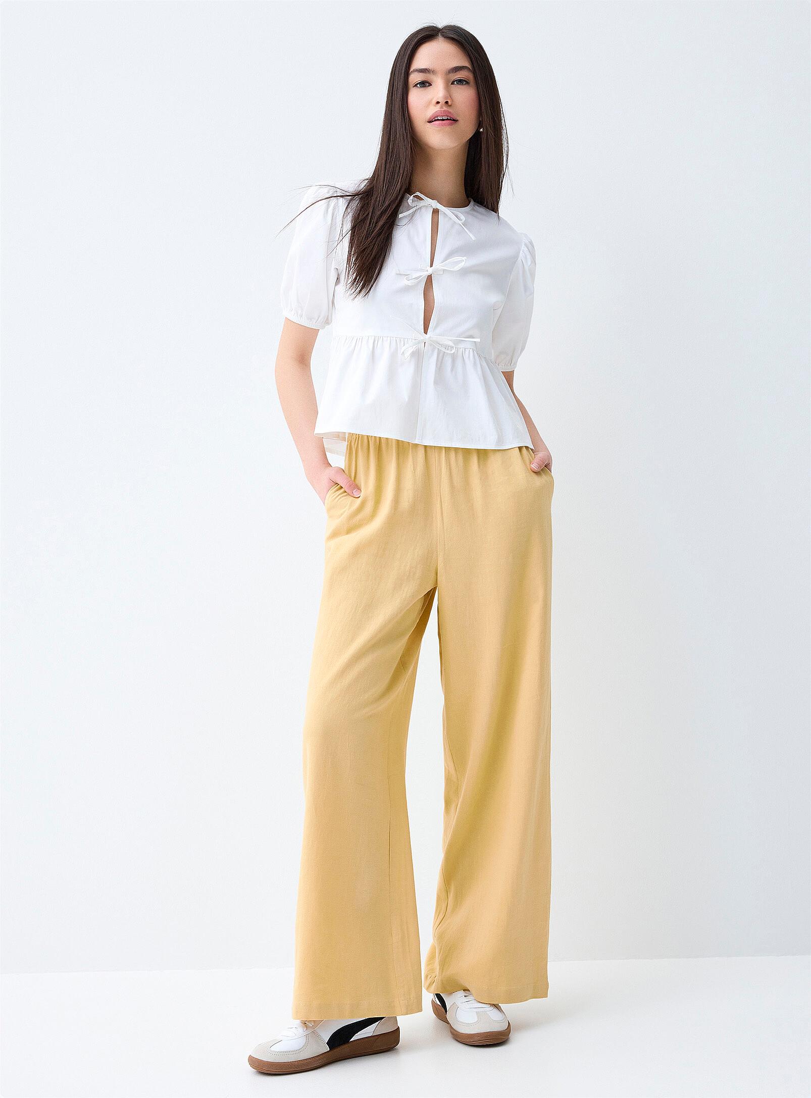 Twik - Wide-leg organic linen pant Twik Twik exclusive Thin fabric in an organic linen and viscose blend Covered elastic waist Slit pockets Rise: 16" (41 cm) Inseam length: 28.5" (73 cm) The size of the item pictured is small