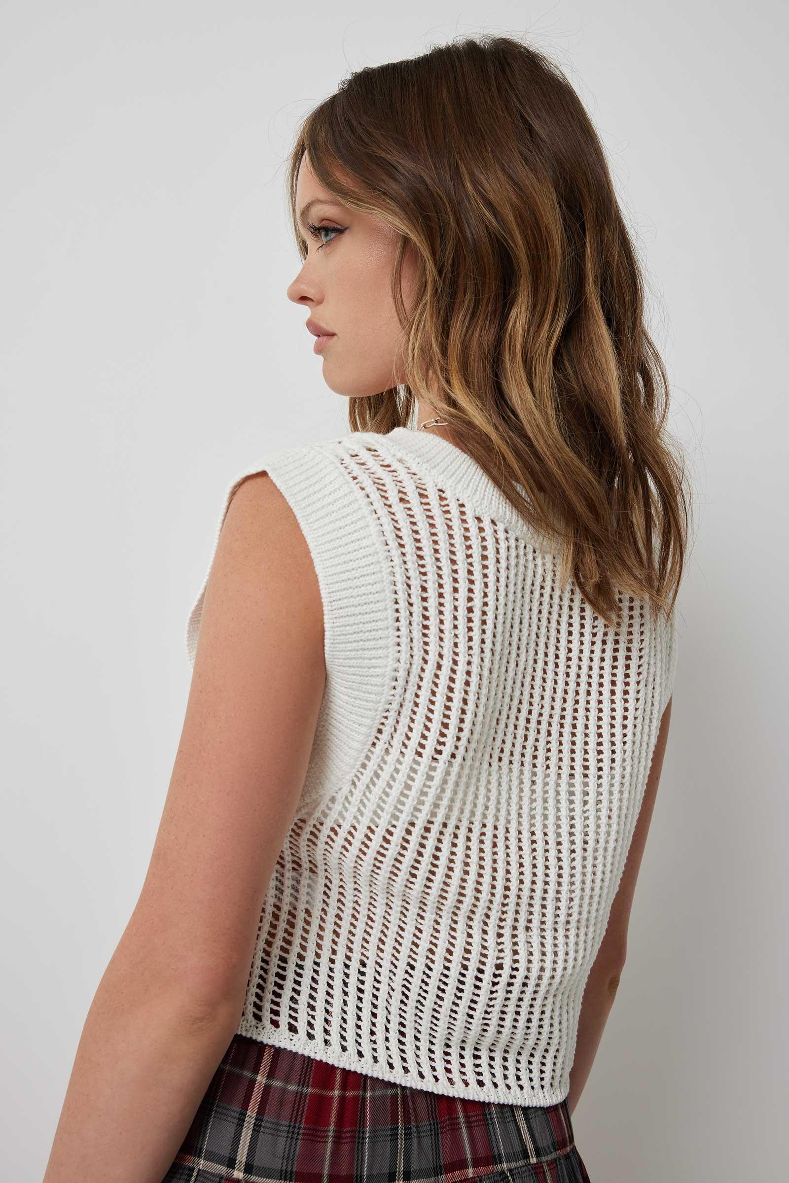 Open stitch lightweight sweater. Sleeveless V-neck 60% cotton, 40% polyester Model is wearing size XS/SFor XS/S, select SFor L/XL, select L | Ardene Crop Open Stitch Sweater Vest in White | Size Medium | Polyester/Cotton