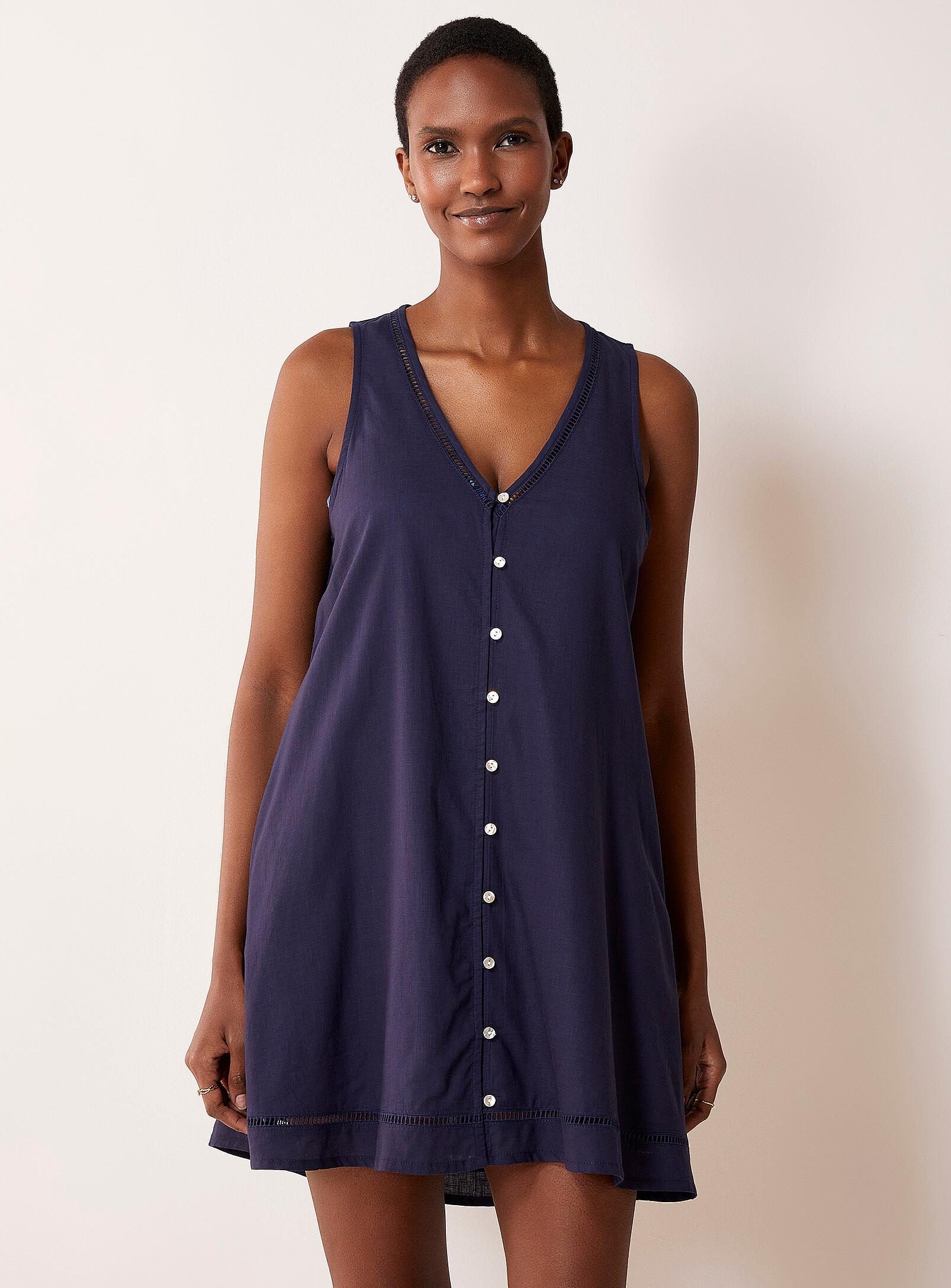 Women > Beach & Swimwearbr>Koy Resort - Openwork-detail sleeveless dress Koy Resortbr>ul>li>Koy Resort at Simons/li>li>V neck/li>li>Sleeveless design/li>li>Full-length pearly buttons/li>li>Patch pockets/li>li>Openwork crochet details on the edging/li>li>Fluid and lightweight viscose-linen fabric/li>/ul>br>br>The size of the item pictured is small