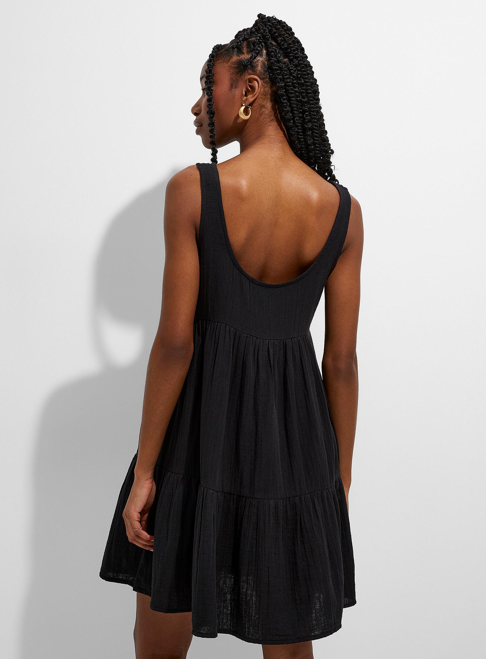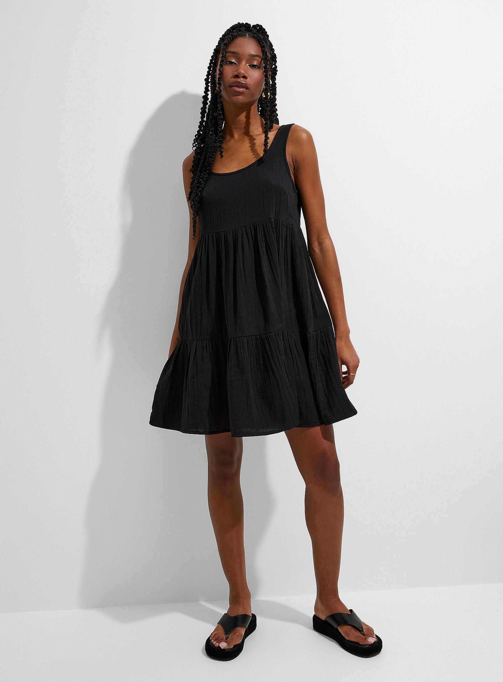 ICHI - Pure cotton gauze tiered mini-dress (Women, Black, MEDIUM)
