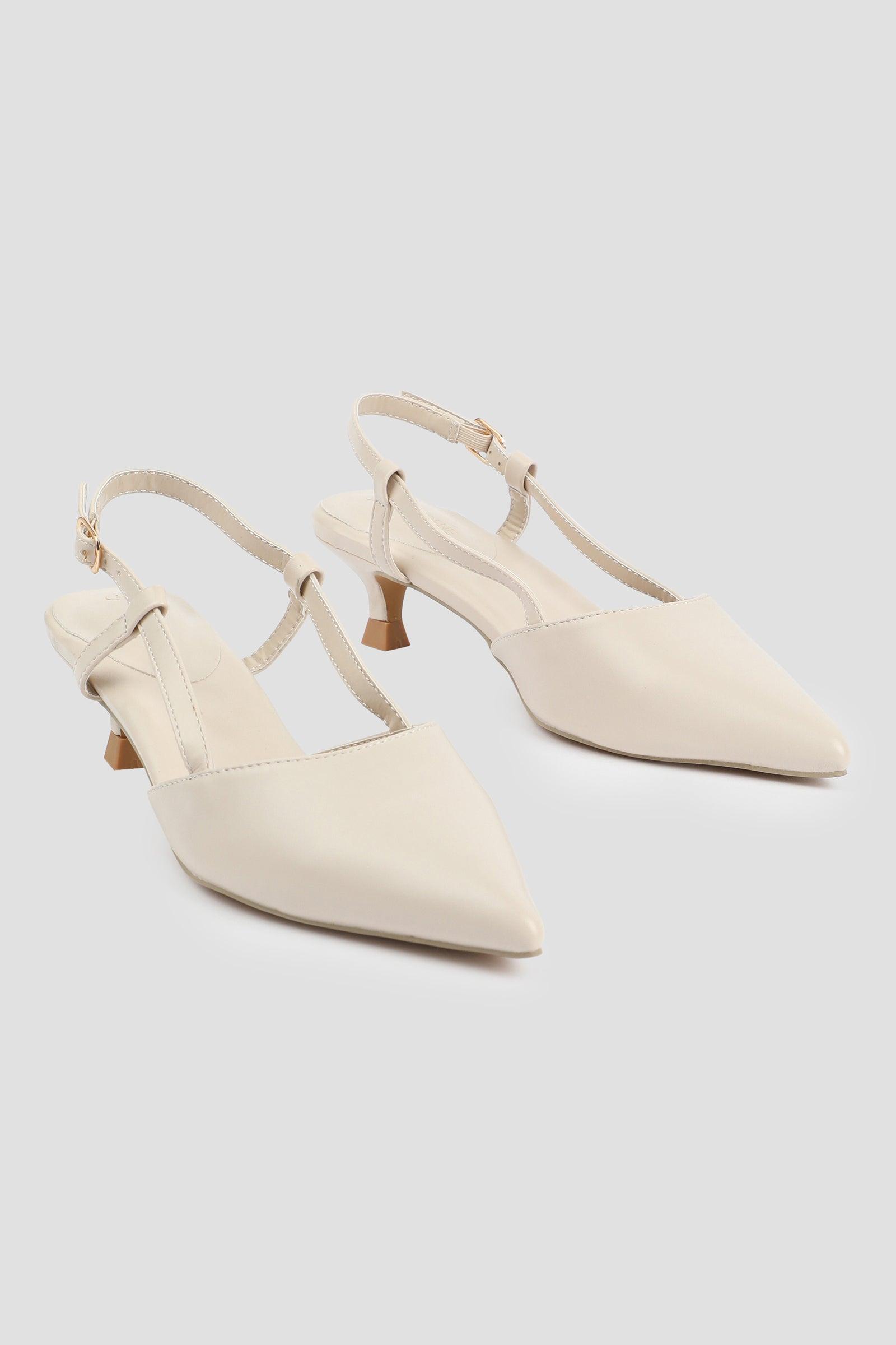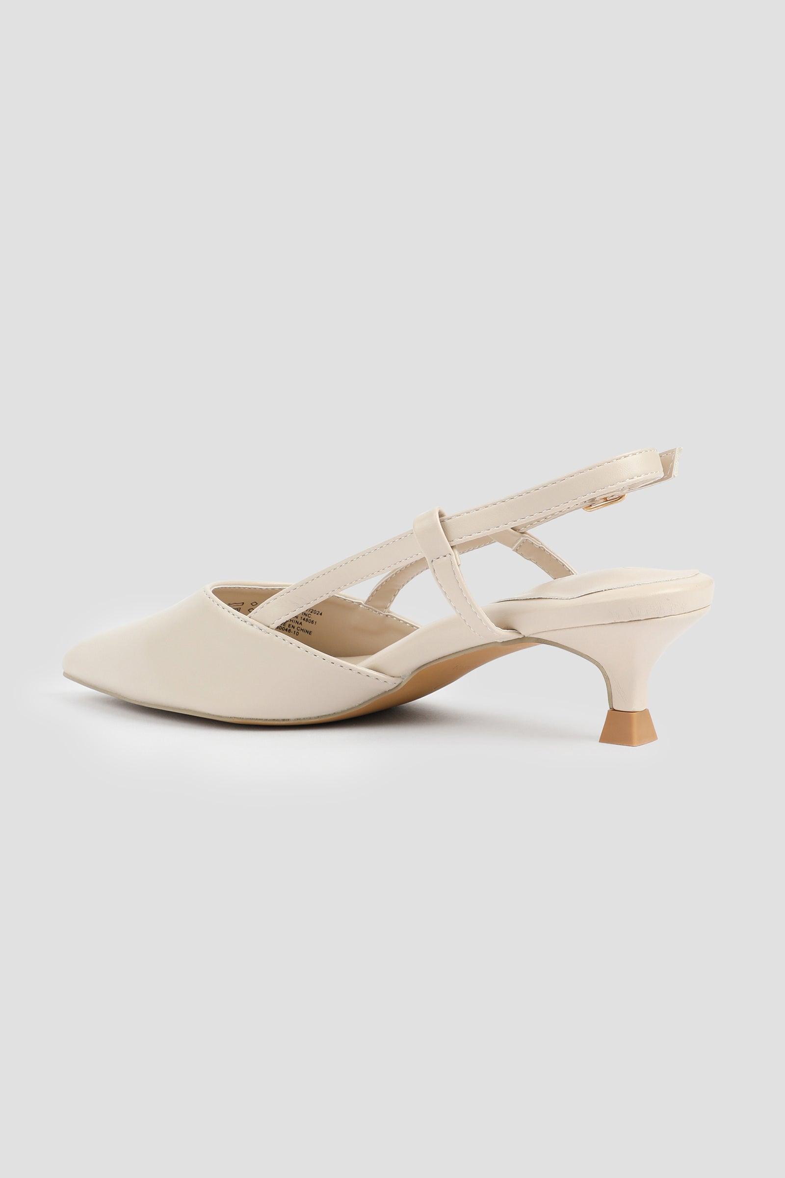 Eco-conscious faux leather heels. Pointy toe Adjustable strap Upper: recycled faux leather Lining: recycled textile Heel height: 1.2 in Comfort foam insole PVC outsole | Ardene Kitten Heel Slingback Pumps in Beige | Size 7 | Faux Leather | Eco-Conscious