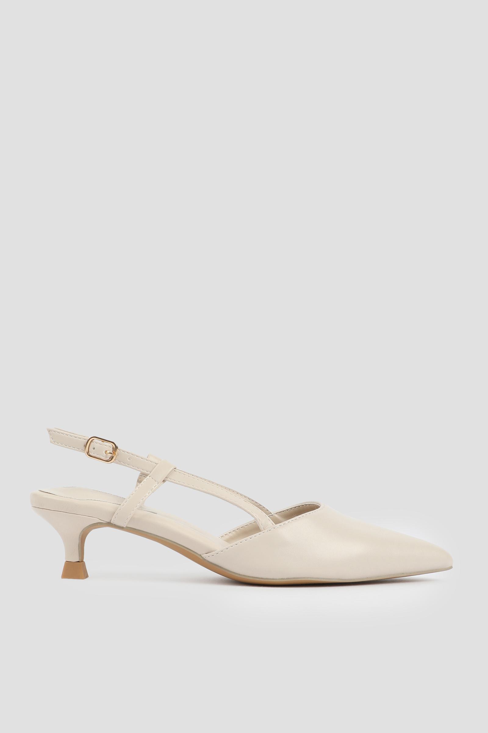 Ardene Kitten Heel Slingback Pumps in Beige | Size 7 | Faux Leather | Eco-Conscious